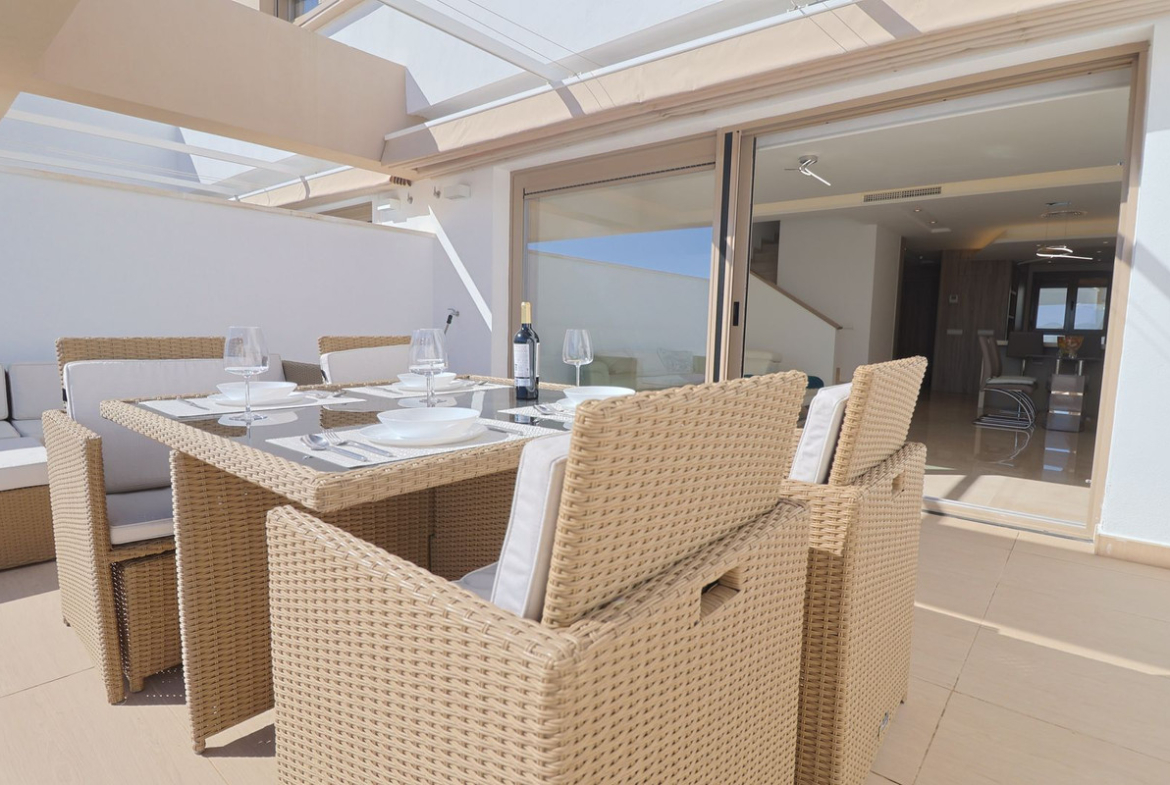 The rooftop solarium is a standout feature, offering spectacular panoramic views across the golf course, mountains and out towards the sea — an exceptional space for sunbathing or evening entertaining. Solar panels for hot water further enhance the property’s energy efficiency and cost-effective running.