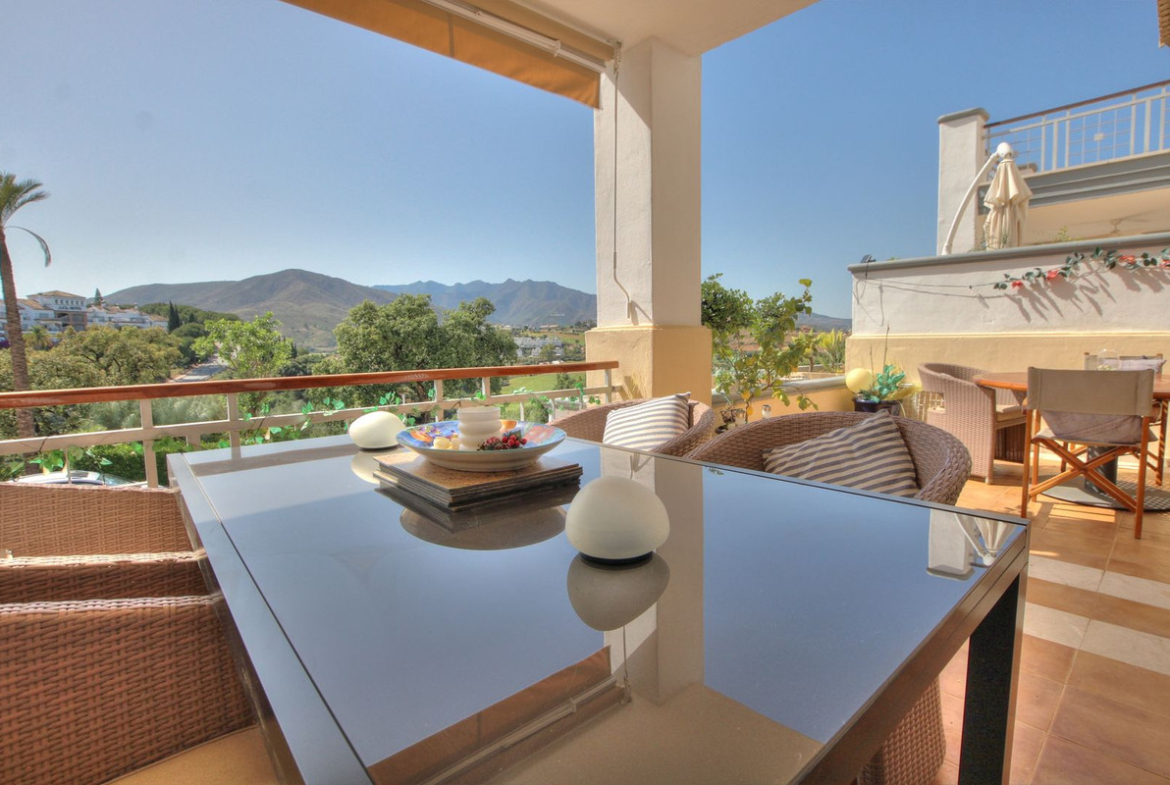 This luxurious and extra large townhouse in La Cala Golf offers plenty of living space, and fabulous open views to the golf course and the mountains beyond. The small gated community also has a wonderful communal pool and garden area. The house itself has a huge private garage, a very large lounge/diner leading to a sunny terrace, a fully equipped and modern kitchen with morning terrace. Upstairs you have 3 double bedrooms with built in wardrobes, the main bedroom has a large en-suite bathroom and a private terrace with the most wonderful uninterrupted views and the guest bedrooms have the use of the guest family bathroom. The house has a recently replaced air conditioning system, is tastefully furnished and represents great value for money. Sure to sell fast, please enquire today!