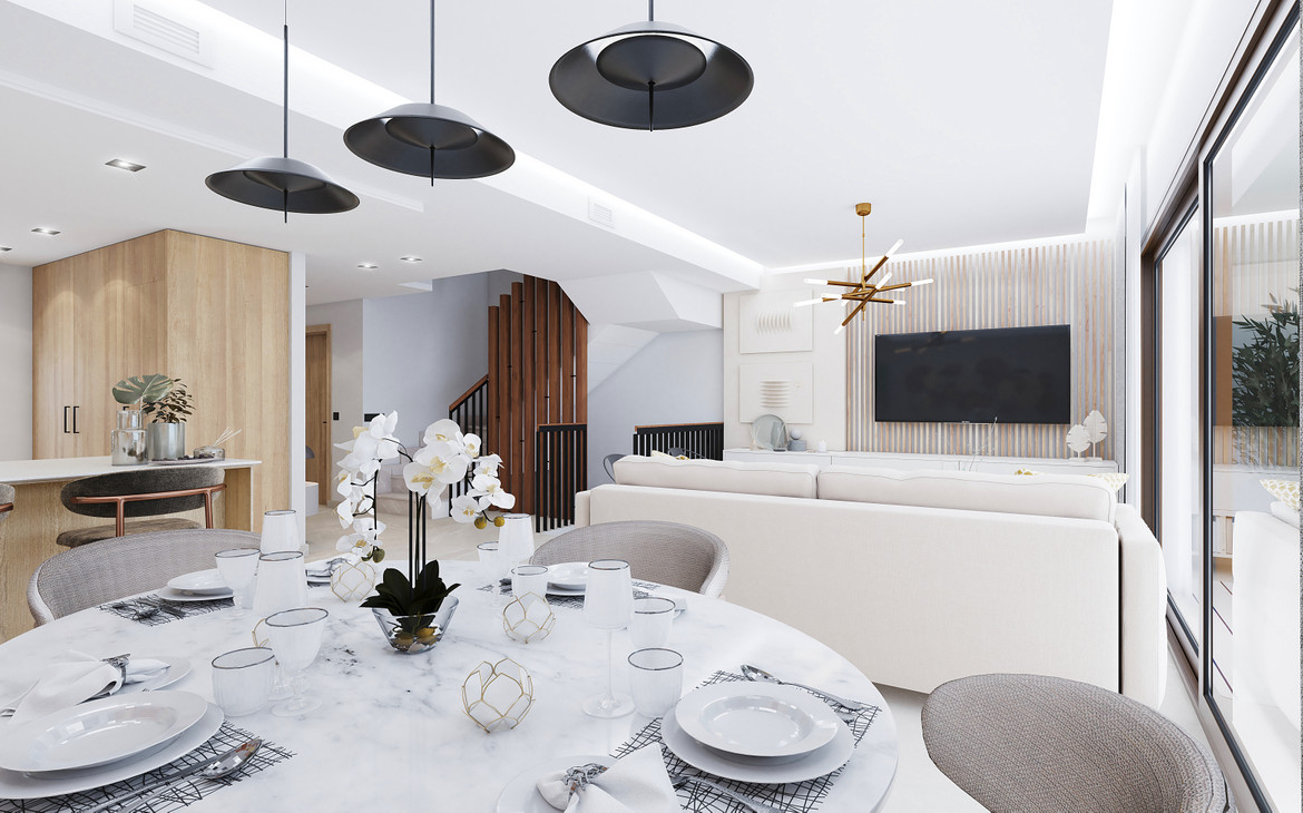 This development is definitely the project for you if you are looking for a comfortable, functional home with a private basement, a light and airy main floor with a fully fitted and equipped kitchen, 3 spacious bedrooms, large terraces and a garden.