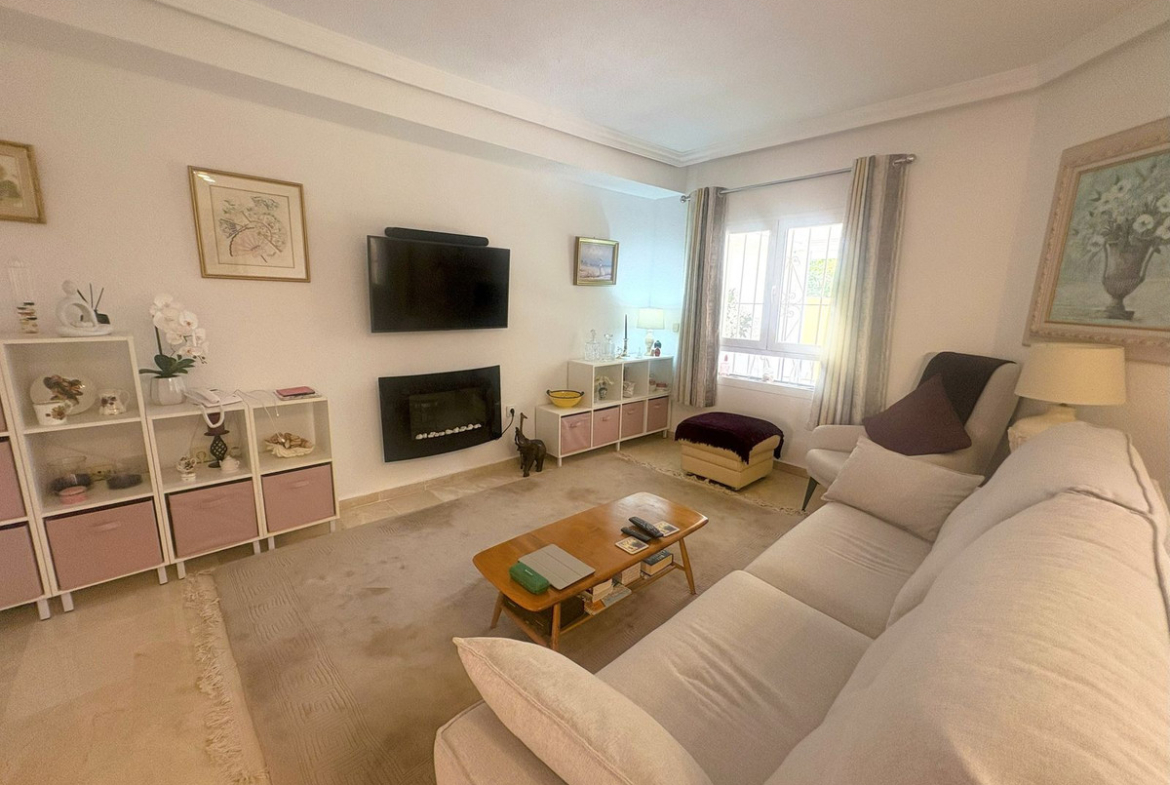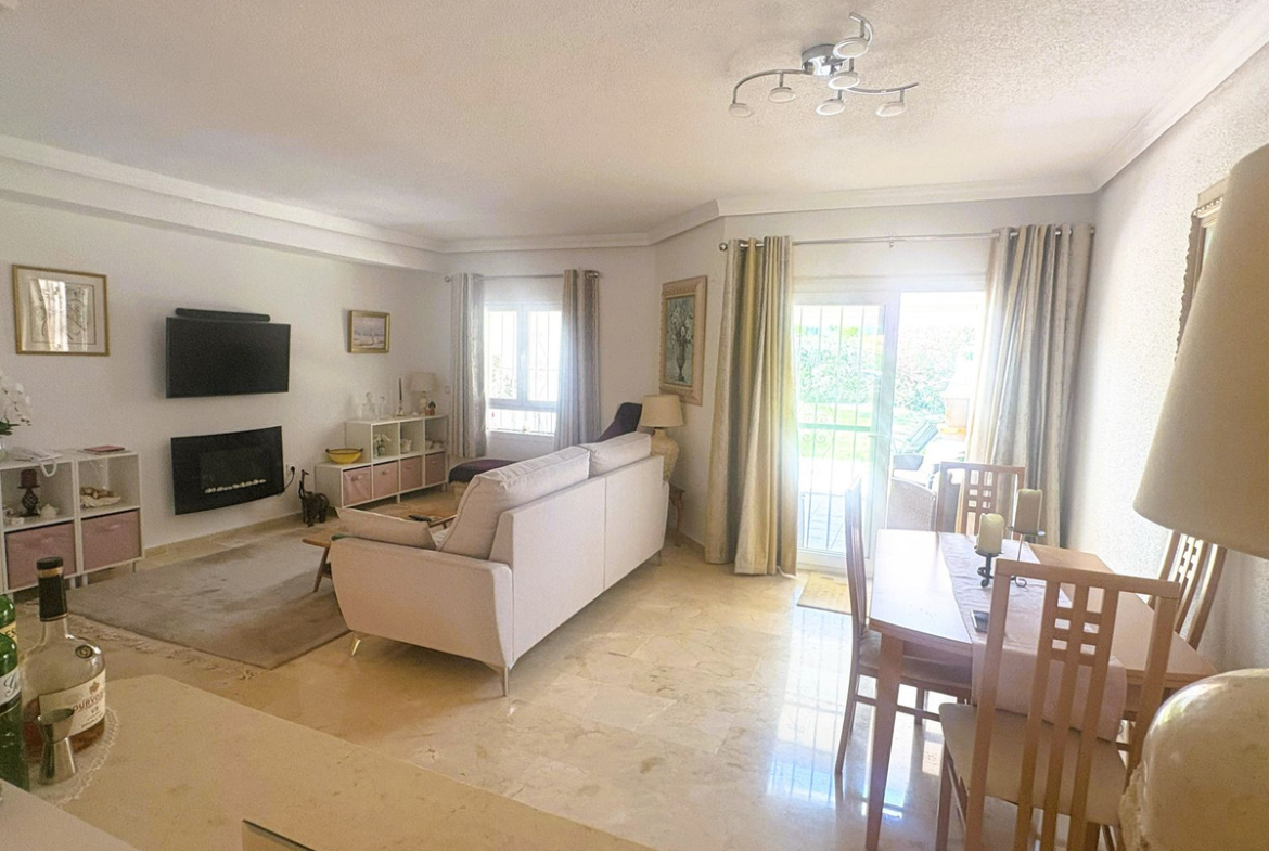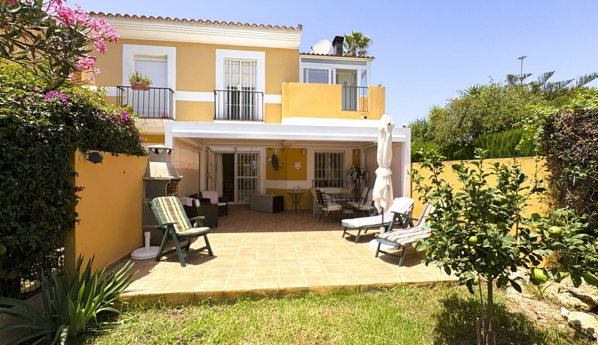 A beautiful townhouse with a large private garden and fantastic terrace, overlooking the fairways of Duquesa Golf. This is located in the highly desirable community Villas del Golf, a pleasant walk away from Duquesa Marina.
