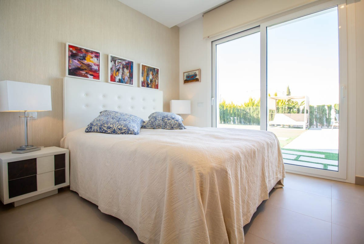 p>LAS COLINAS : COMUNIDAD ALMENDRO. The villa is located in the exclusive and prestigious community ALMENDRO, has a large plot of 1200 sqm: The property has a surface of 140 sqm, an outdoor terrace of 37 sqm, a large outdoor storage room, barbecue, Balinese-style shower room and a private pool of 26 ́95 sqm, plus a spectacular and original ‘putting green’ of artificial grass. </p>