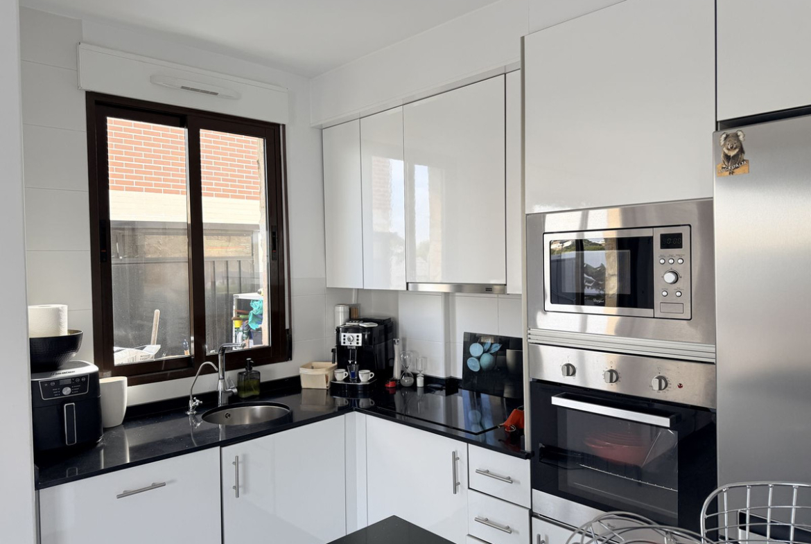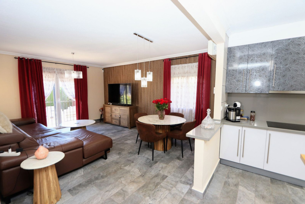 This renovated property features three bedrooms with fitted wardrobes, two bathrooms, a spacious living/dining area, and a fully fitted kitchen. Additional benefits include air conditioning, private terraced areas, BBQ, off-road parking, communal parking, a terrace off the master bedroom. The property is within a gated community which offers a communal swimming pool and gardens