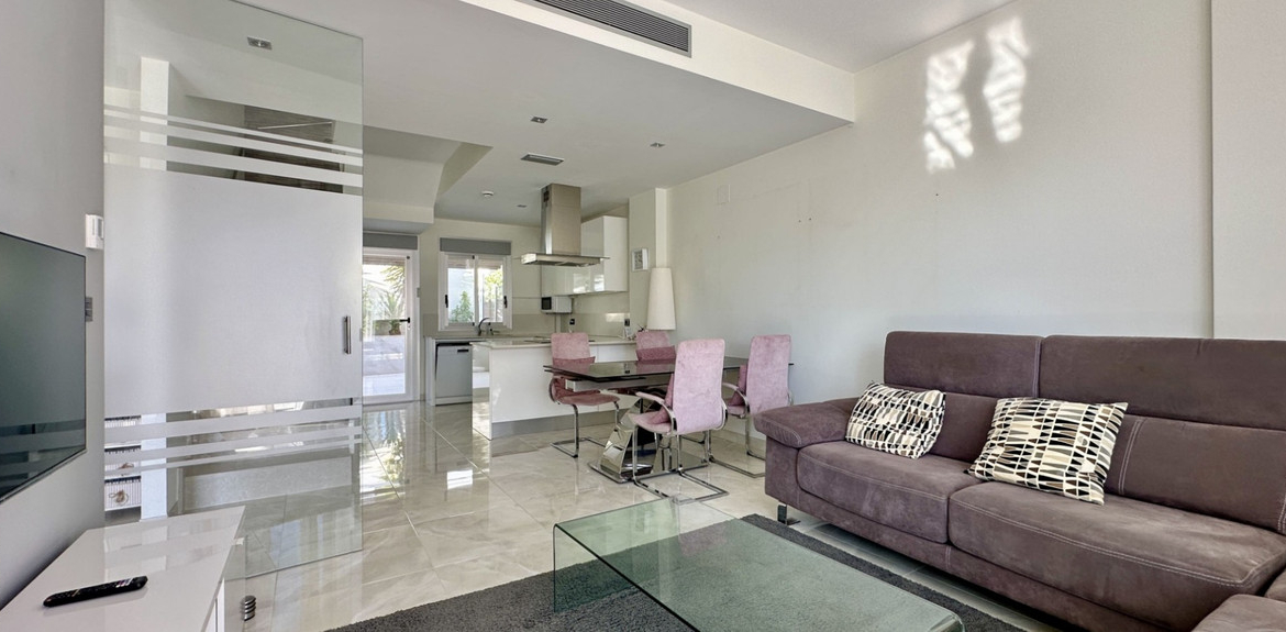Discover this beautifully maintained detached villa located in the sought-after area of Lomas de Cabo Roig / Los Dolses, Orihuela Costa. Built in 2016, this modern home offers 125 m² of space across three floors, set on a 230 m² plot.