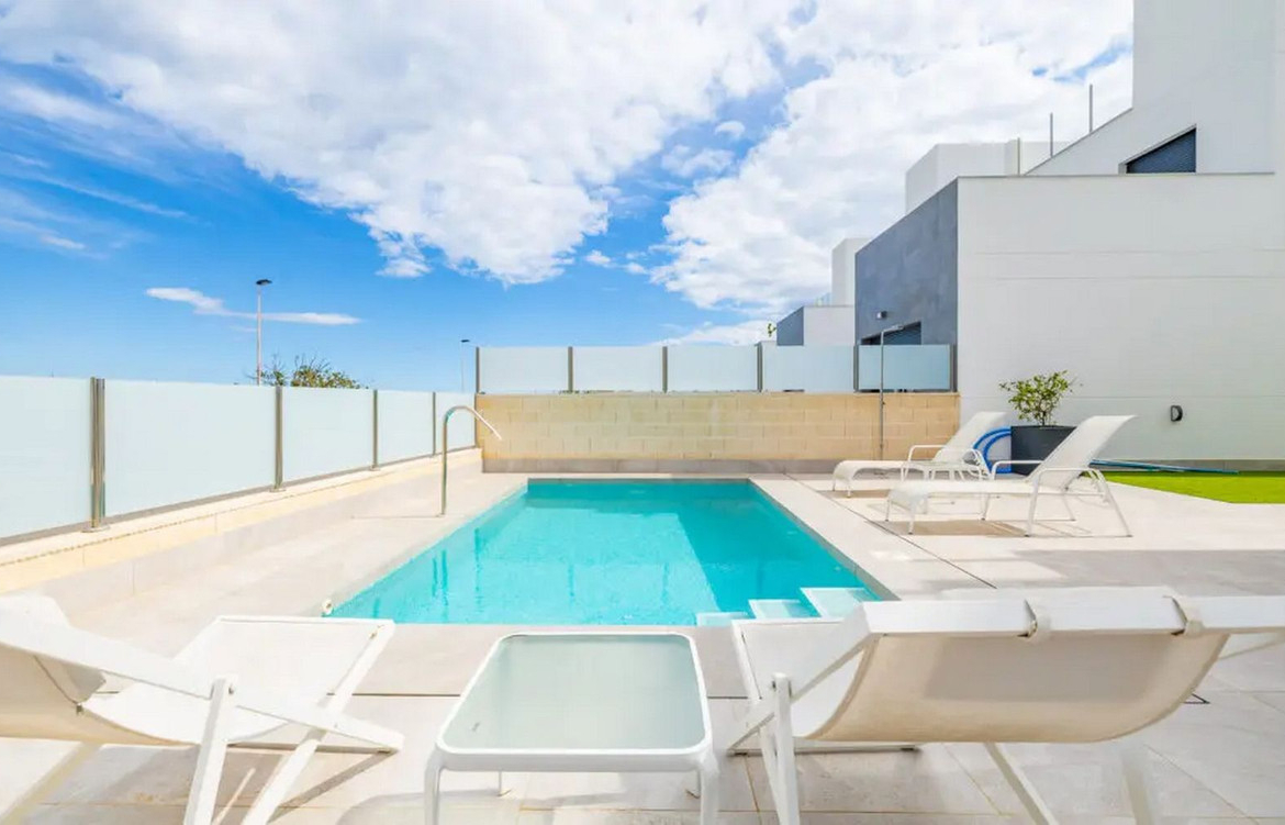 The villa is located in a peaceful and well-connected area and you’ll find supermarkets, pharmacies, restaurants, and cafés within walking distance. The beach is only a short bike ride away, and for shopping and entertainment, the popular La Zenia Boulevard is just a short drive away.