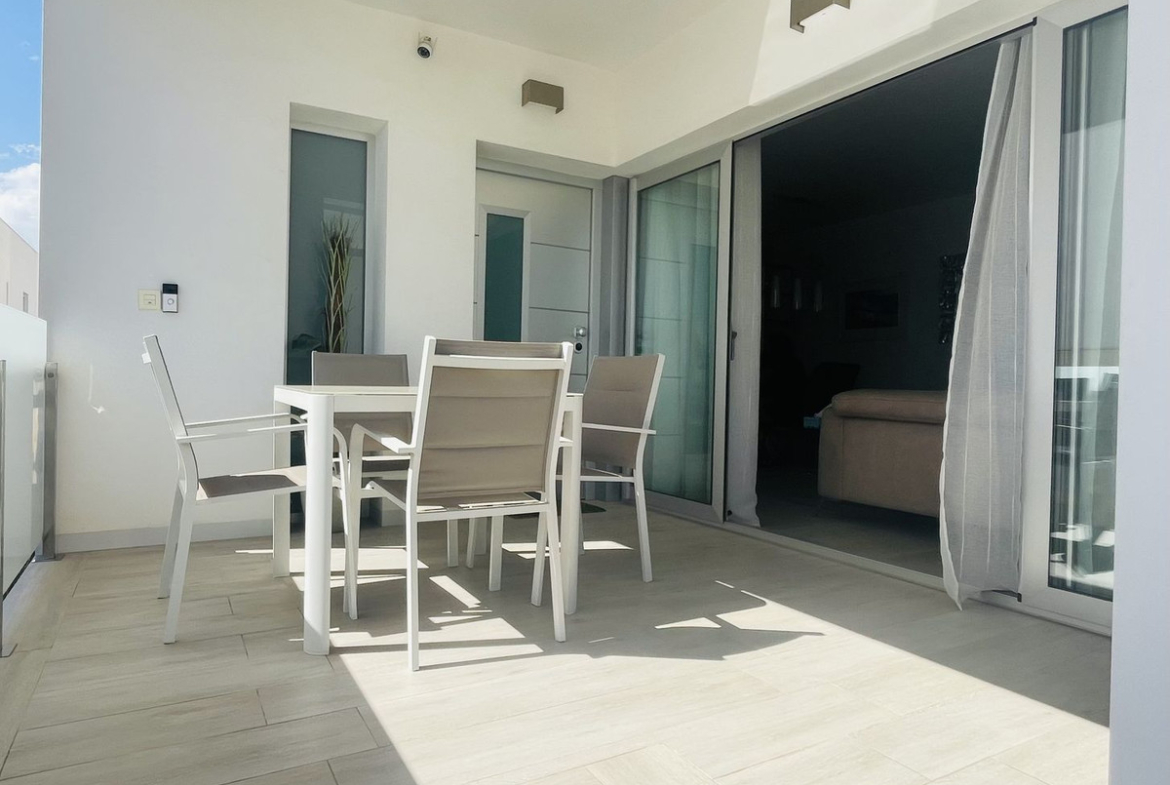 New to the market – Stunning 3 bedroom modern semi- detached villa Located in a secure gated community, this southeast-facing 3-bedroom resale newbuild offers comfort, style, and convenience in one of the most sought-after areas. ✨ Property Features: • Bright open-plan living room and kitchen • Lovely front seating area as you enter the property • 1 large ground-floor bedroom and bathroom – ideal for guests or accessibility • 2 upstairs bedrooms, both with direct access to a spacious terrace • Ducted air conditioning throughout • Tastefully decorated interior • Off-road parking • Offered part-furnished • Stunning communal pool set in beautifully maintained grounds • Walking distance to bars, restaurants, supermarkets, and La Zenia Boulevard • Only 4 minutes’ drive to the beach. This propertblends modern living with a prime location – perfect as a permanent home or holiday retreat.