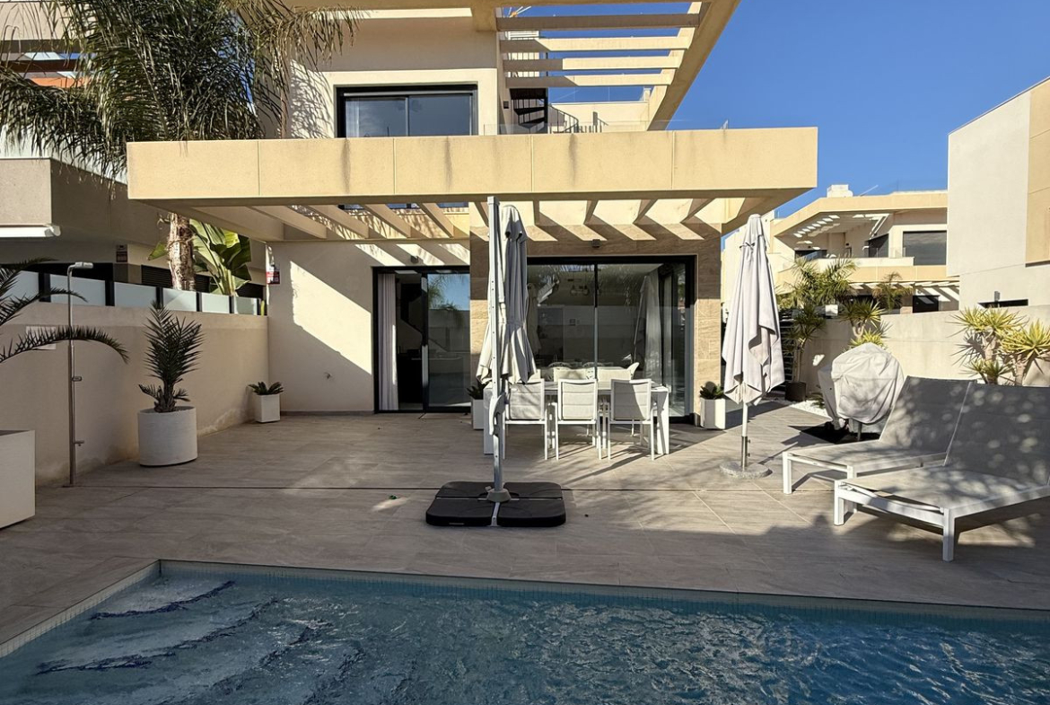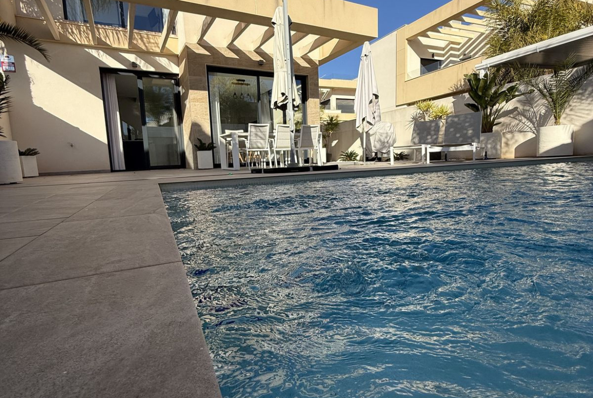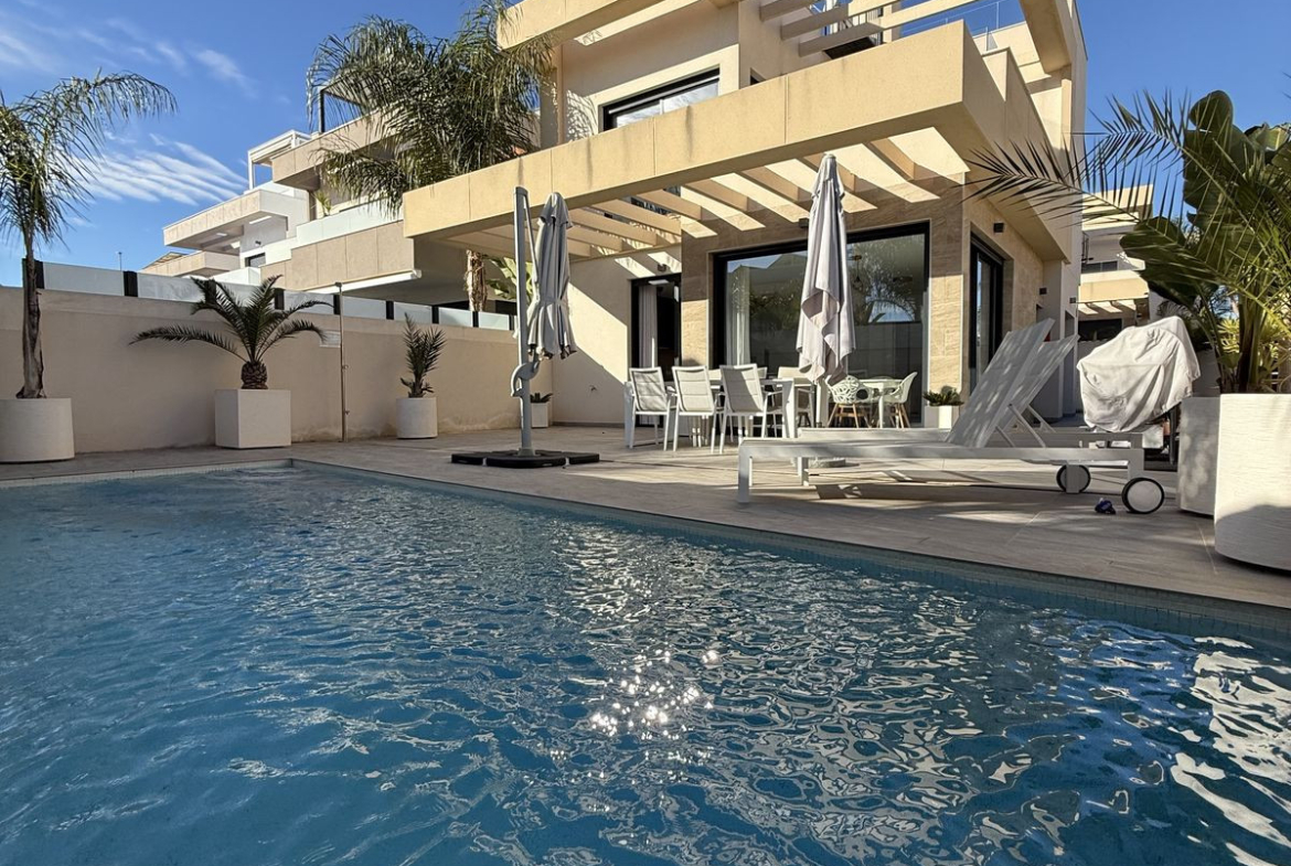 Discover this spectacular modern-style villa located in Los Montesinos, a quiet and well-connected area of the Costa Blanca, ideal for enjoying the Mediterranean climate with total privacy and comfort.