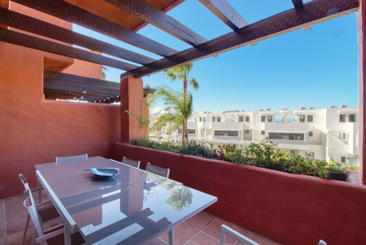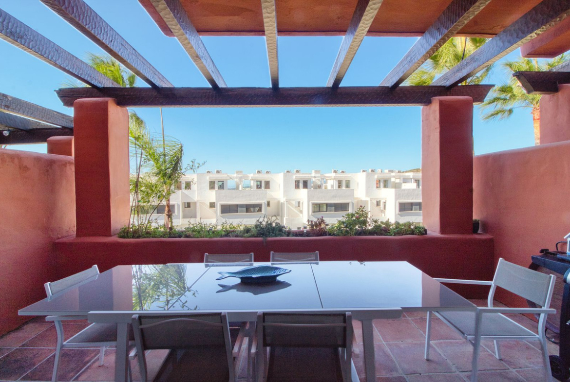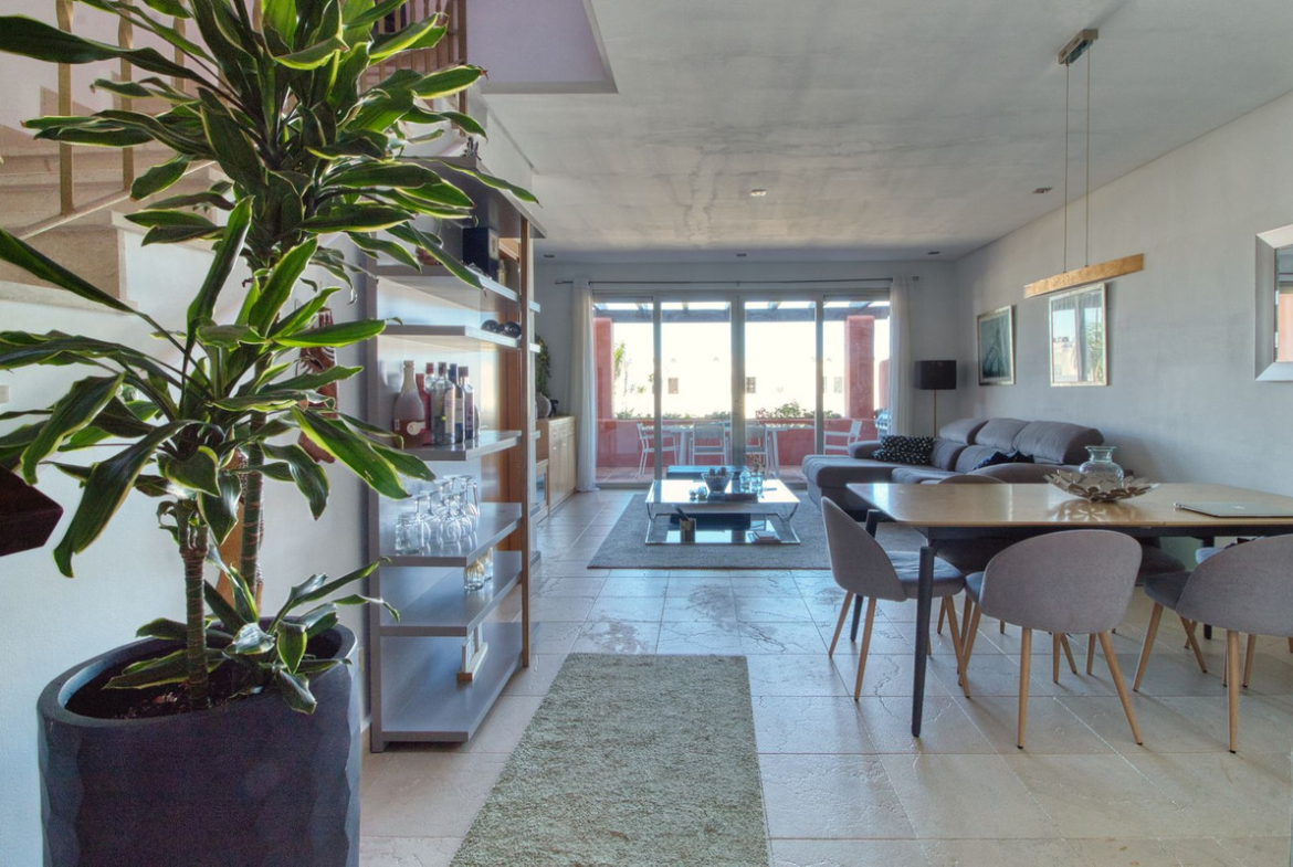 The property is set within a beautifully designed complex by renowned architect Melvin Villarroel, surrounded by lush tropical gardens and offering access to three communal swimming pools, one of which is open year-round. Its location is unbeatable—just minutes from the lively marinas of La Duquesa and Sotogrande, with their fantastic restaurants, bars, and amenities. Several top golf courses are also only 10–15 minutes away, making this an excellent choice for golf enthusiasts. Whether you are seeking a family home, a holiday retreat, or a sound investment, this property truly delivers on all fronts.