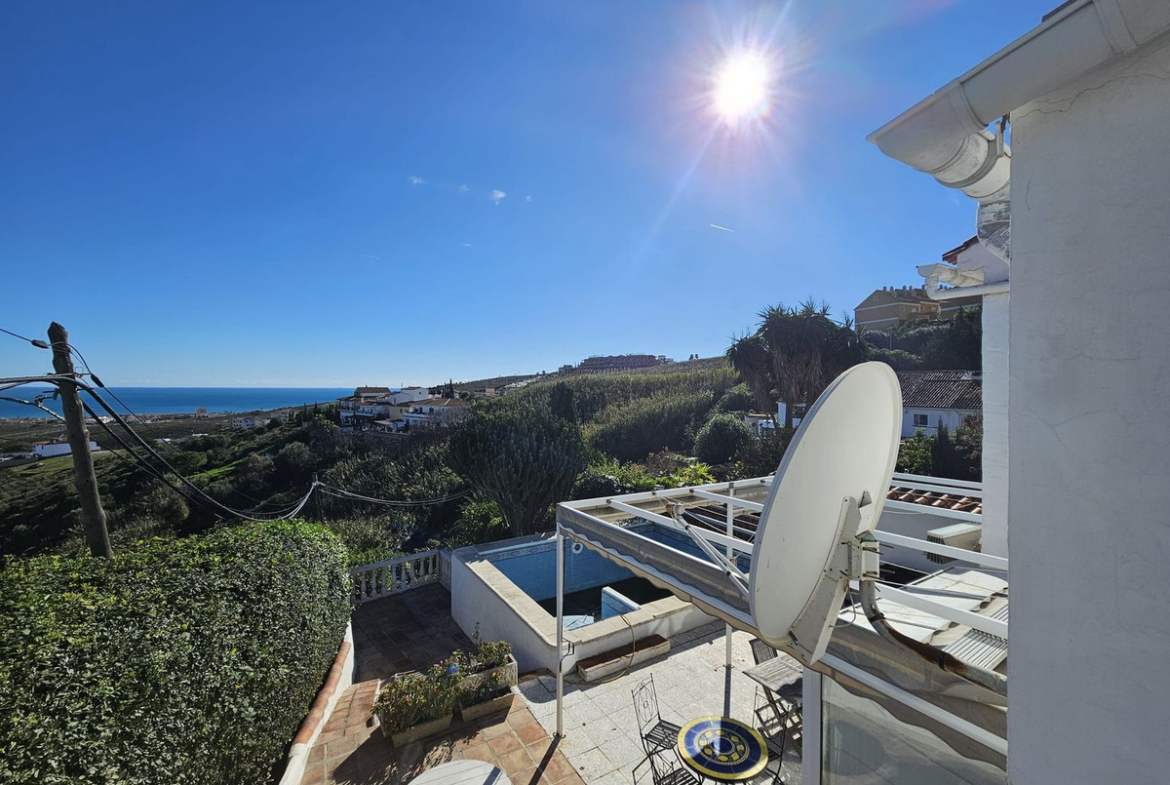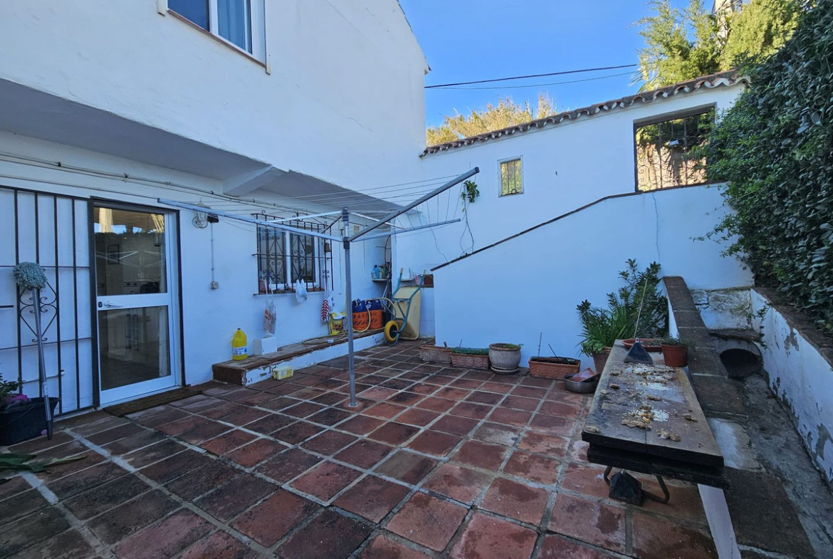 Gorgeous corner townhouse with 3 big bedrooms, two bathrooms, large kitchen dining, large living room with fireplace. South facing garden with private pool and sea views.. Real andalucian house, real opportunity!