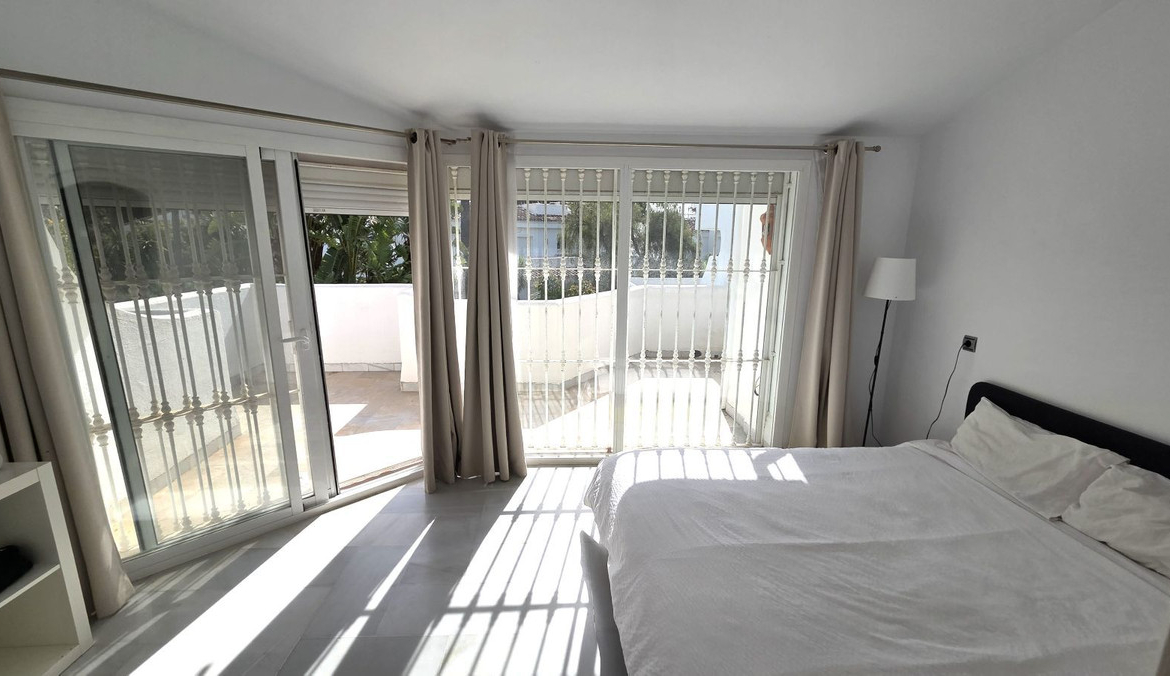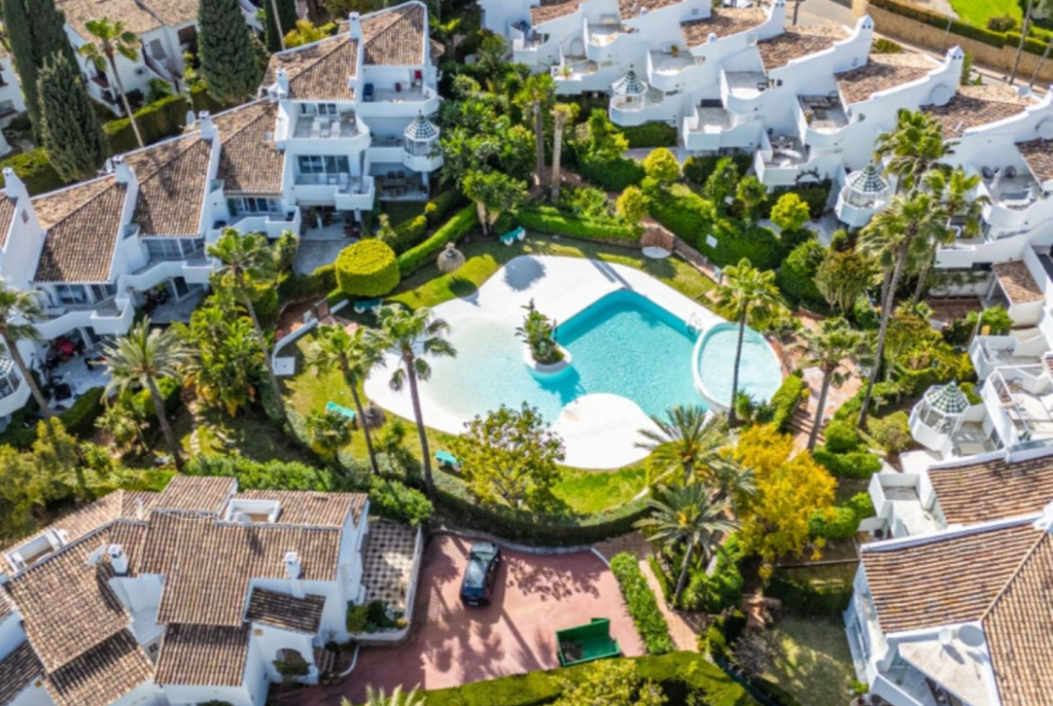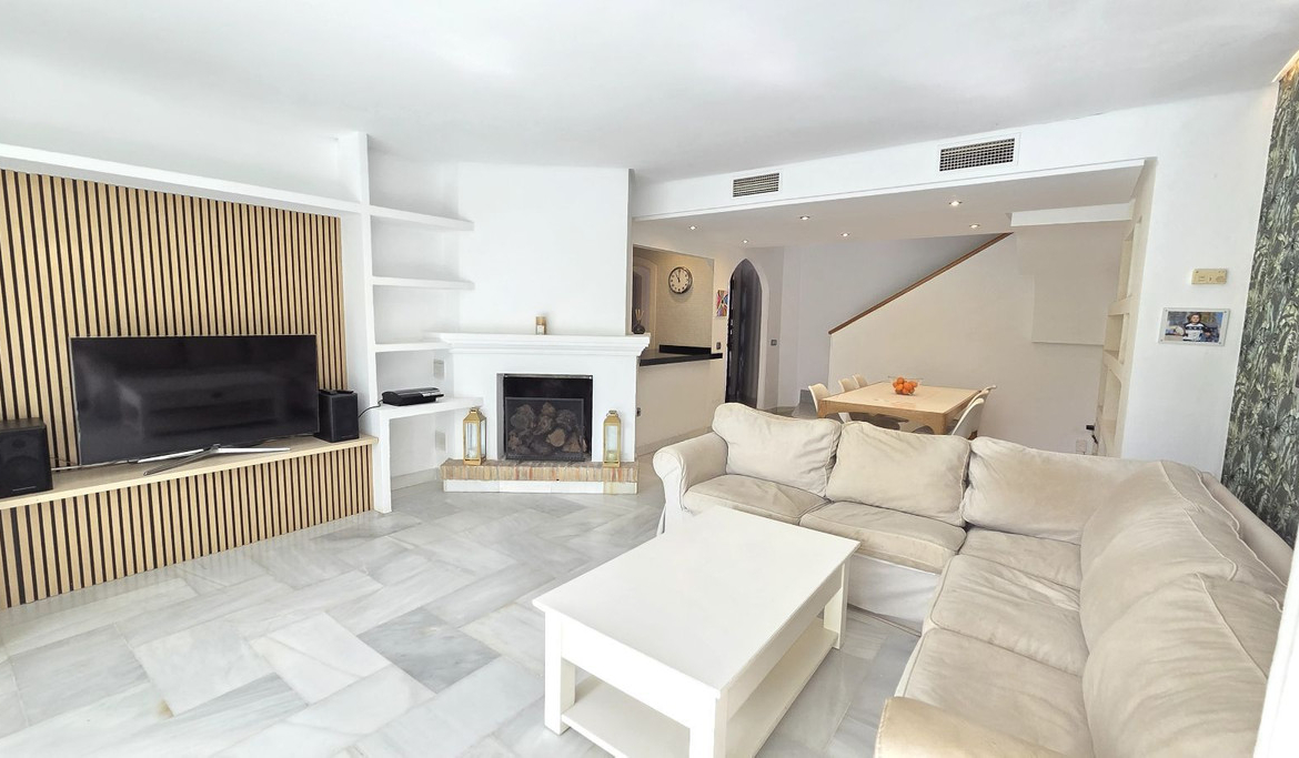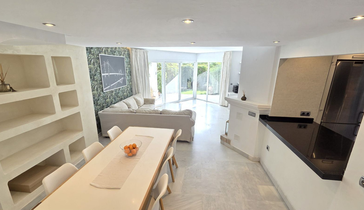 Semi-detached villa in Balcones de Sierra Blanca, located within the exclusive Camoján Blanco residential complex. This private community consists of only 27 homes and features beautiful communal landscaped gardens and a stunning saltwater “beach-effect” pool with direct access from the property.. The complex is situated in one of Marbella’s most prestigious areas, surrounded by stately villas and located near the renowned Buchinger Clinic, as well as being just a few minutes' drive from Marbella city center.