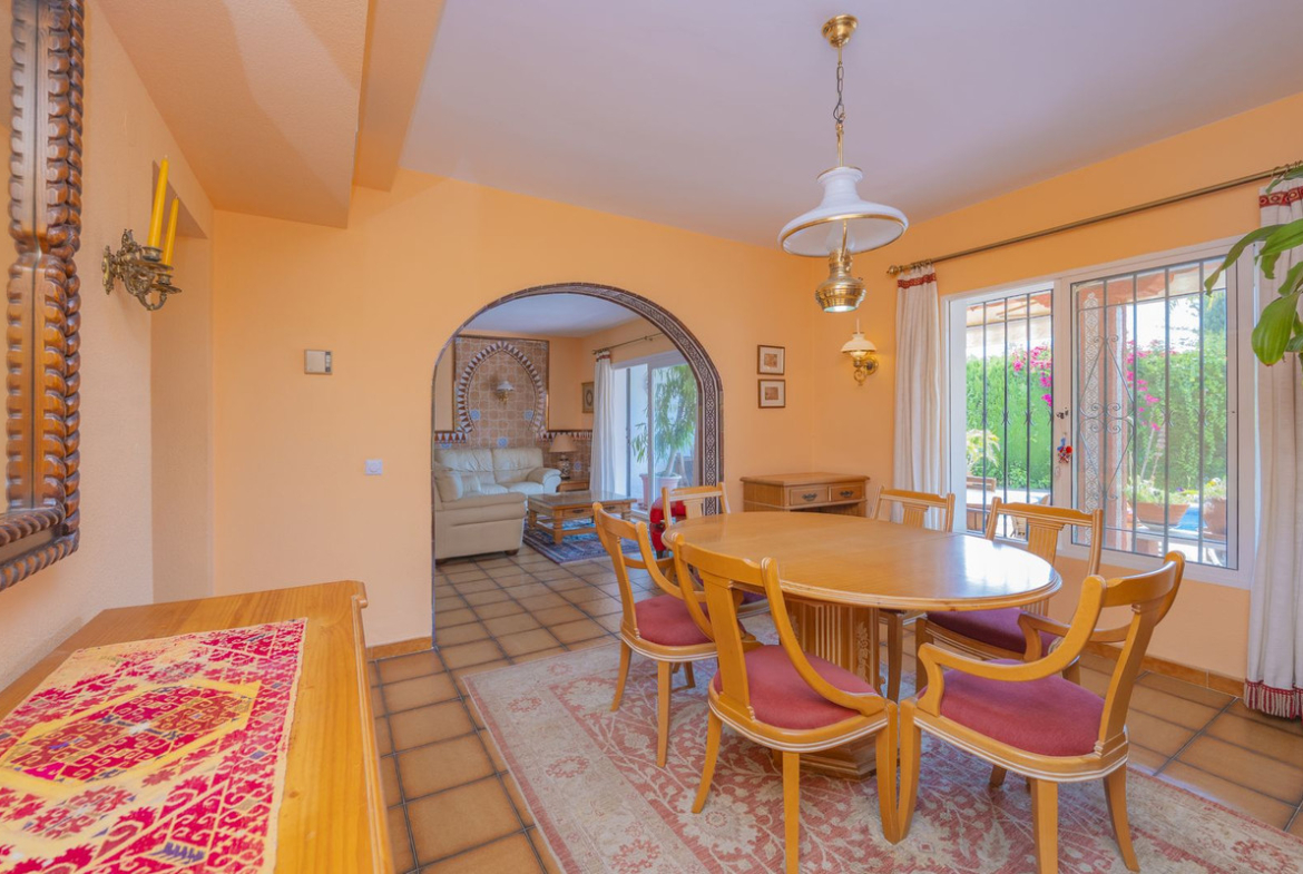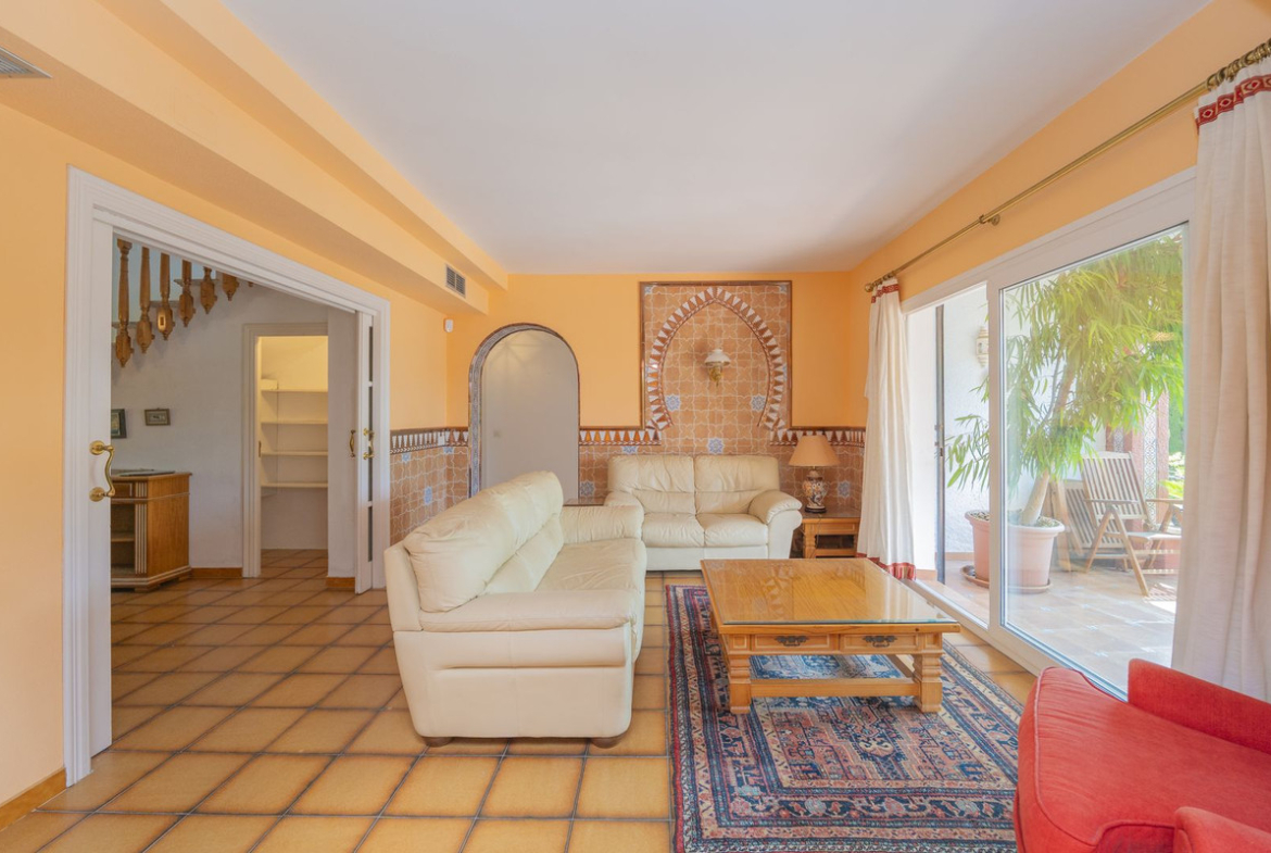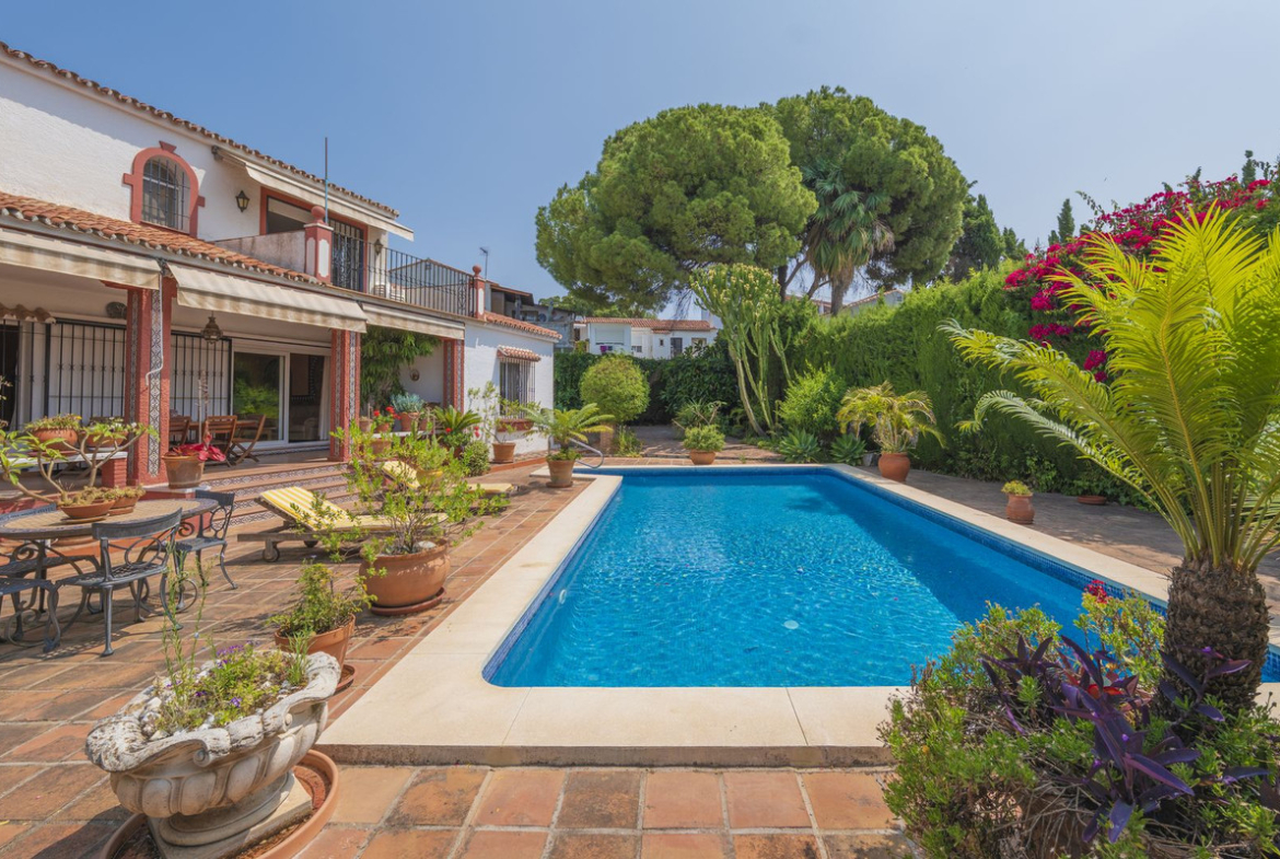 Detached Villa at the renowned and consolidated residential area of El Mirador de Marbella. A house designed for relax and enjoyment, near schools, supermarkets and just a stone's throw away from the A7. With the enchanting Andalusian scent, and a 823sqm plot, the two level dwelling displays a fully fitted kitchen with pantry and independent entrance, a guest toilette, the cosy living room with access to the covered 20sqm terrace and garden plus an adjacent dining room; besides, two ample bedrooms that share a bathroom with Sauna. On the upper level, the main bedroom, with bathroom en suite, lounge and small office like corner adding a second 10sqm terrace with a glimpse of the sea. This charming traditional style property boasts, eventually, a nice and sunny pool and a BBQ area conveniently situated and covered. Private parking also covered. Charm and details for this property with an enviable location, within Marbella town area, with plenty of amenities and leisure offer at hand, and yet, tranquil and private, as one could expect from a property of this level.
