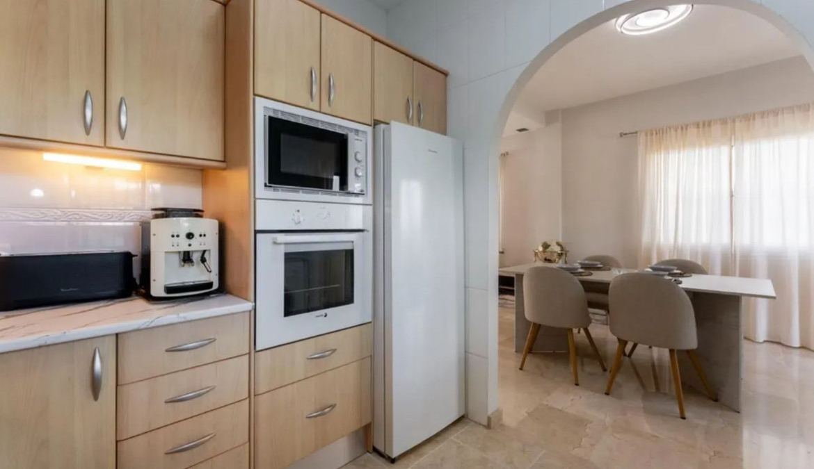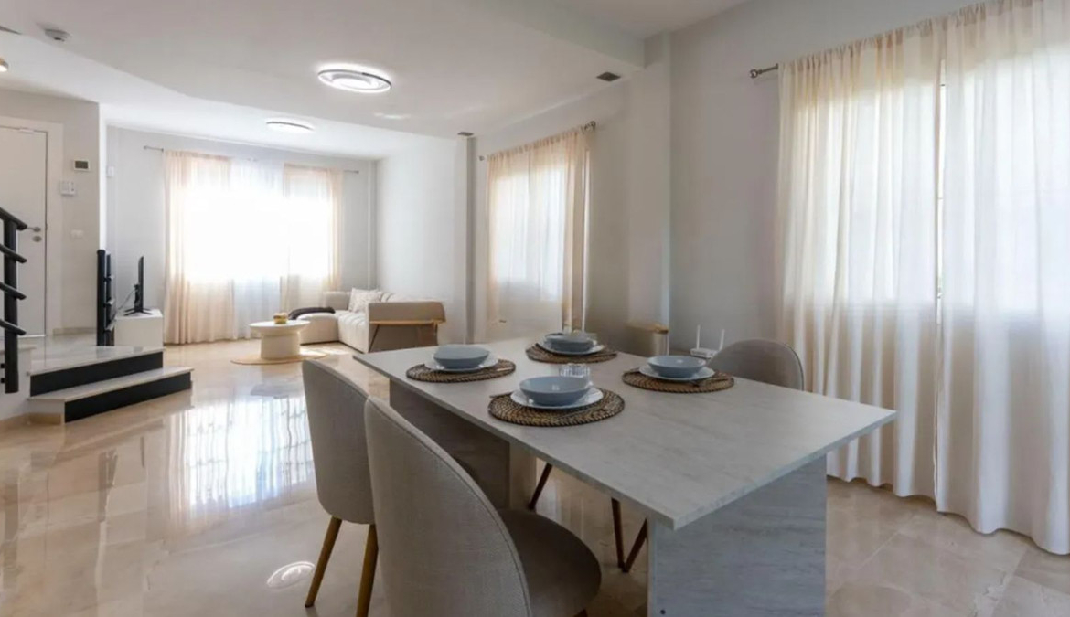 The house is distributed over three levels and offers 148 m² built (111 m² usable), combining comfortable interior living with excellent outdoor areas. The main floor features a welcoming living room with direct access to the garden and communal swimming pool, creating the perfect setting to enjoy the Mediterranean climate all year round, as well as a kitchen and a bathroom. The first floor comprises three bedrooms and two bathrooms, providing practical and comfortable accommodation for family living. The top floor boasts an impressive 45 m² private solarium with open and sea views, ideal for creating a chill-out area, outdoor dining space, or relaxation zone.