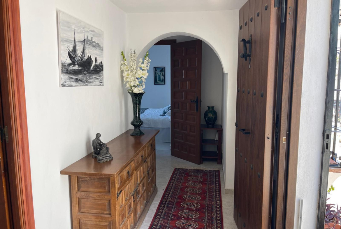 This bungalow-style villa retains its authentic Andalusian charm, with high vaulted ceilings, exposed wooden beams, and traditional Spanish tiling throughout. Thoughtfully maintained and updated, the property boasts renovated en-suite bathrooms, a welcoming lounge and dining area with feature fireplace, and a delightful conservatory with fully retractable doors opening onto a generous terrace with breathtaking panoramic views stretching from the coastline to Fuengirola, La Cala, and up to the majestic Mijas Mountains.