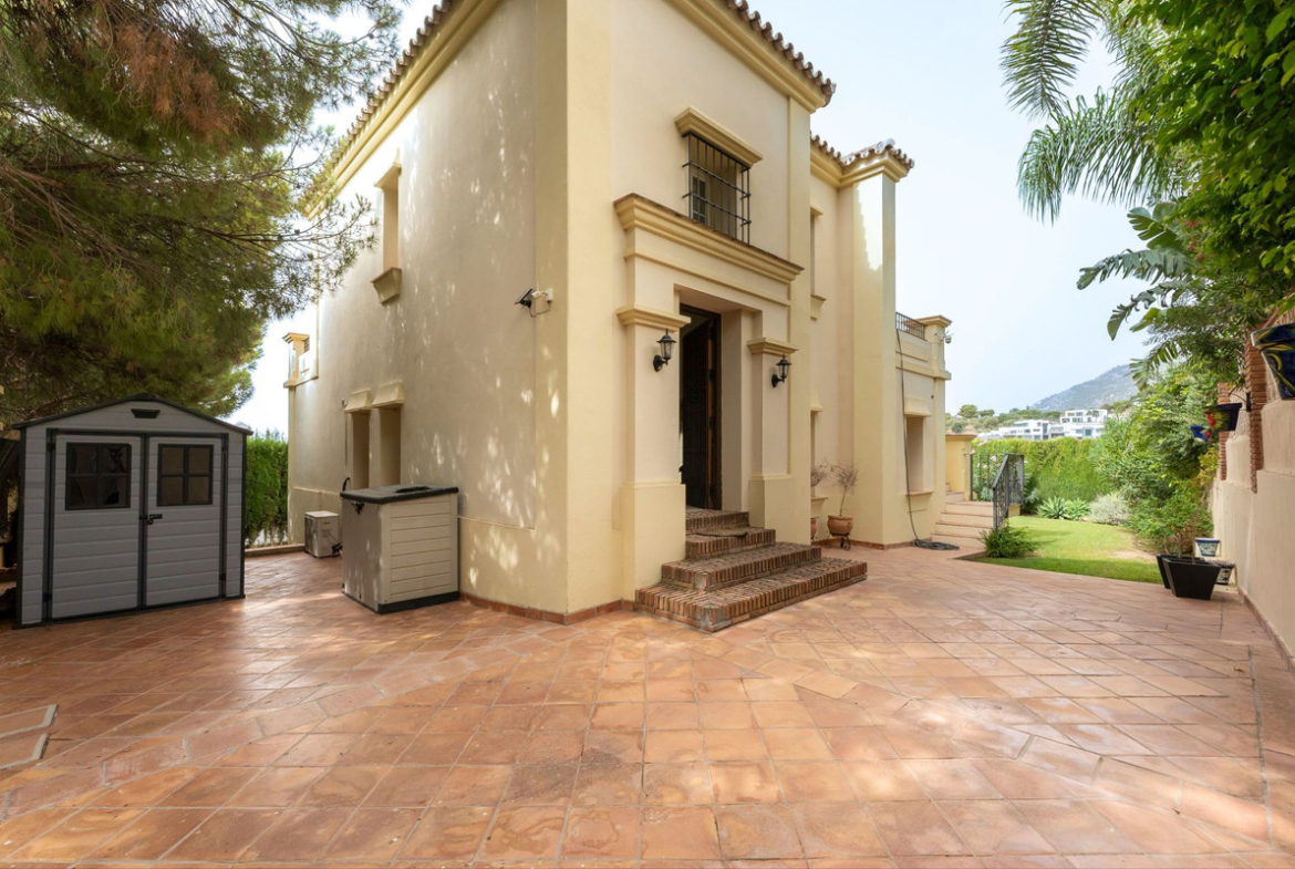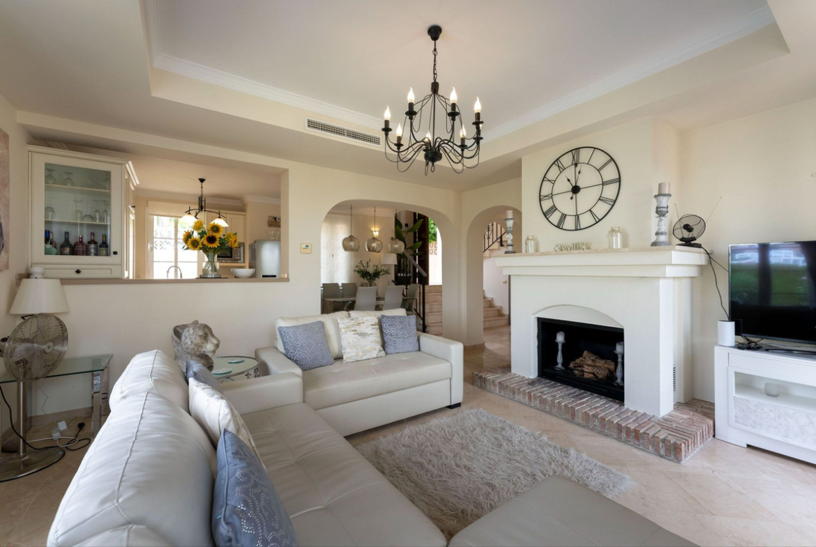 Discover this charming Mediterranean villa, perfectly positioned on a sought-after urbanisation just minutes from the picturesque village of Mijas Pueblo and the coast. Combining traditional style with modern comfort, this home is ideal as a permanent residence, family retreat, or holiday getaway. Inside, the villa offers 3 bedrooms and 2 bathrooms (including an en suite), plus a convenient guest WC. The spacious open-plan kitchen, dining, and living area is the heart of the home, featuring a character fireplace and direct access to a private south-facing terrace overlooking the pool and gardens.