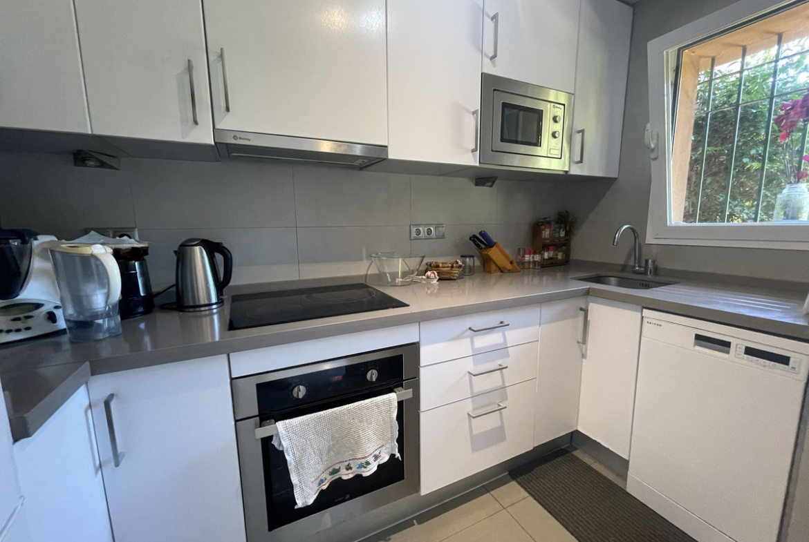 The house is divided into 2 floors with 2 terraces, one of which opens directly onto the garden and pool.
