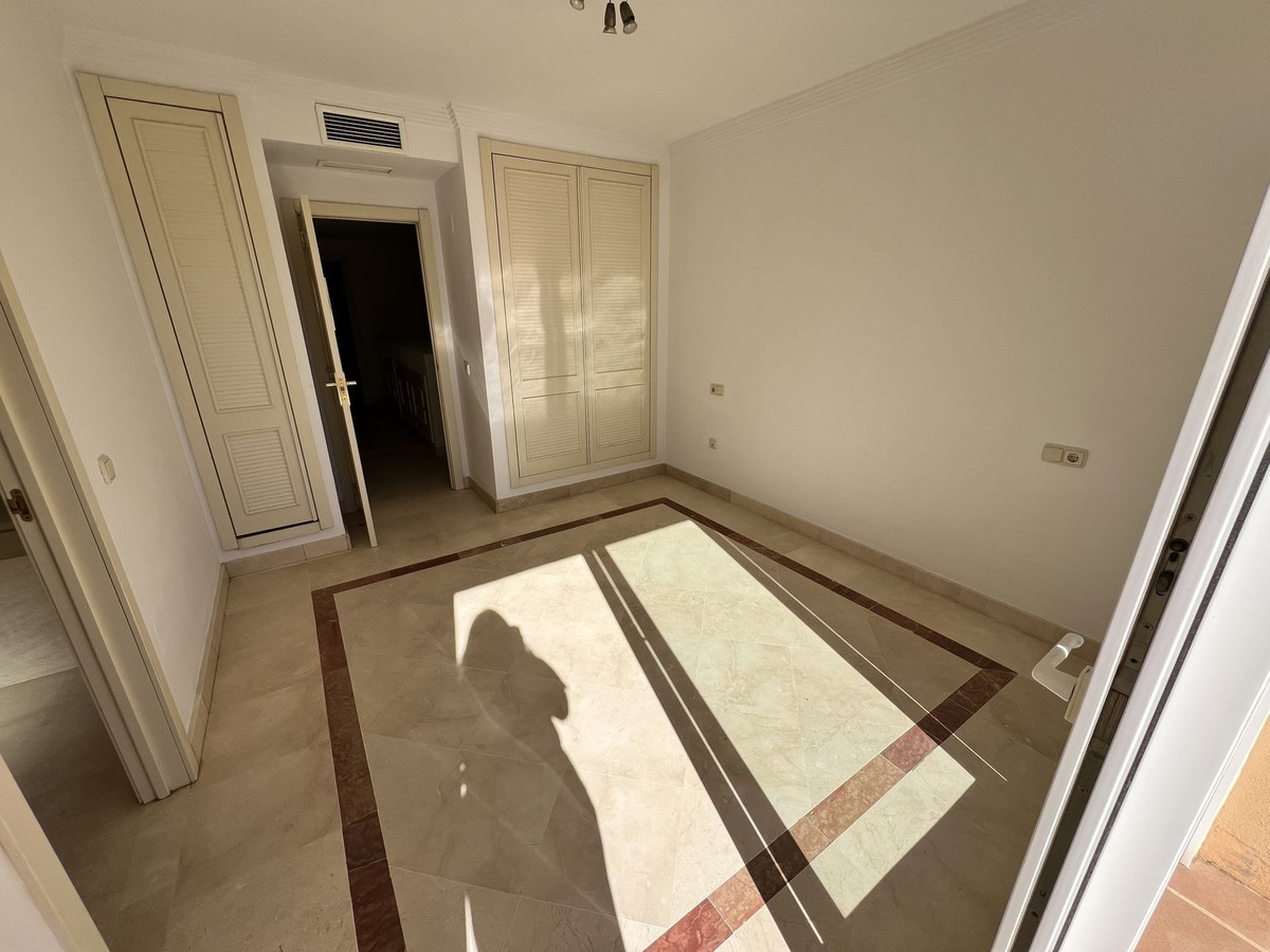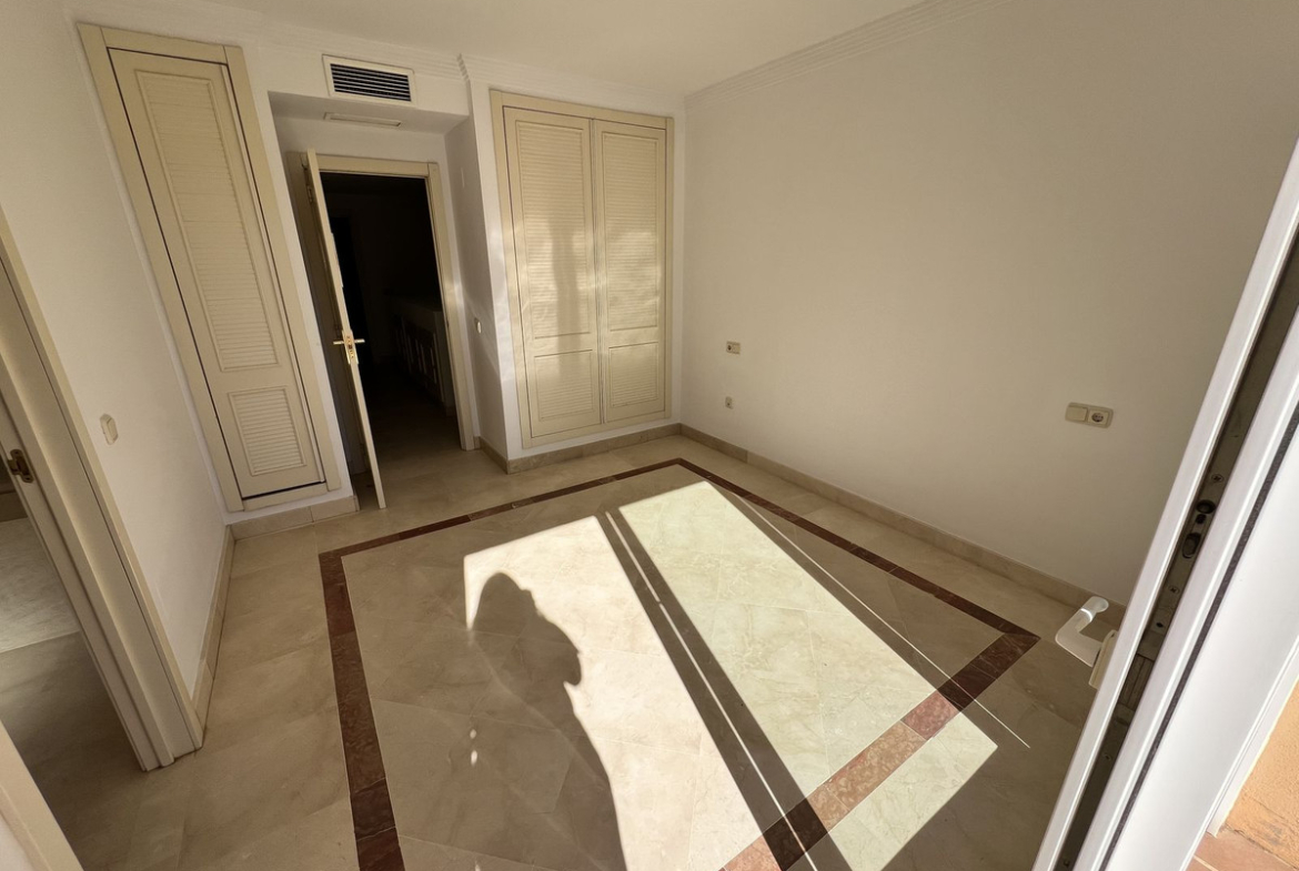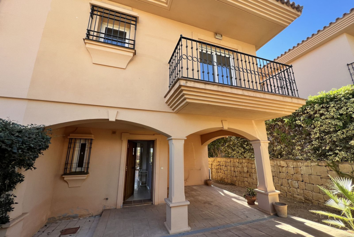 On the ground floor, there is a spacious living-dining area with great natural light, an independent kitchen with the possibility of being opened up to the living room with a minor renovation, a guest toilet, and a separate utility/laundry room. The property features centralized air conditioning and marble flooring.