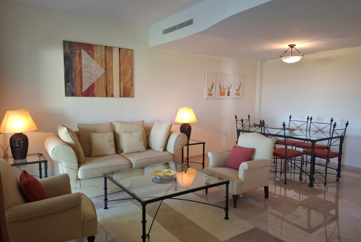This ample 3 bedroom townhouse is situated frontline golf, and offers open and spectacular views of the golf course, the mountains surrounding the valley, and with the touch of the Mediterranean Sea on the horizon.