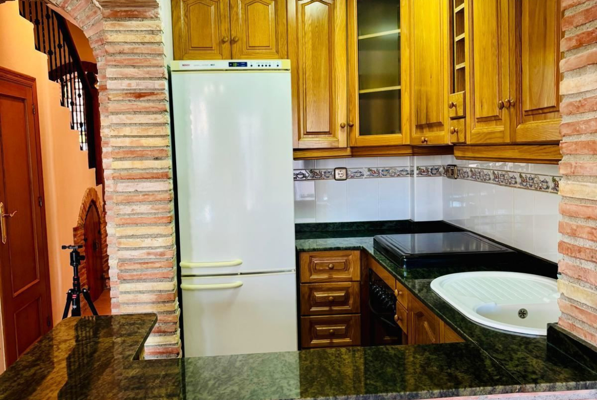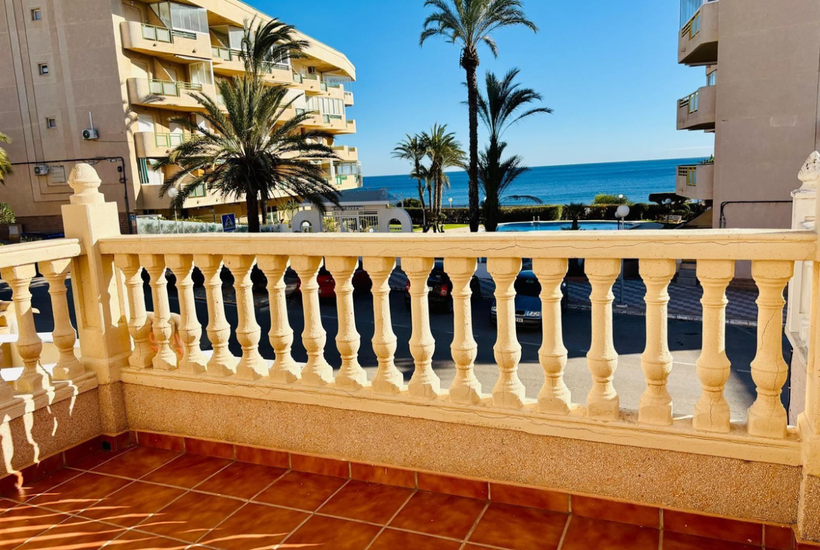 Townhouse with patios, terraces, sea views and communal pool A warm welcome to this beautiful and inviting townhouse with an attractive location near the sea and the beach in Mil Palmeras. The townhouse has three bedrooms, two bathrooms, living room and kitchen. In addition, there are two patios on the ground floor, where the patio has a built-in brick barbecue. One floor up there are two terraces, one of which has a sea view.