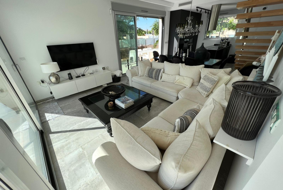 We are really pleased to present this recently build Luxury Seaside villa located just a couple minuets walk to the fantastic sandy beaches of Mil Palmeras, built to a high modern standard built on 2 levels plus a large solarium and various terrace spaces with sea views. As you enter the property you are greeted by the beautiful floating wooden and glass staircase and fantastic modern family kitchen. The open plan living room dining area is really inviting with large floor to ceiling windows and doors which open up to a beautiful low maintenance south facing terrace for entertaining and pool area. On this level you will also find a double bedroom with direct access to terrace space and wardrobe, full bathroom and a large equipped laundry room with storage. On the next level we find 2 en suite master bedrooms with wardrobes, a large south facing terrace with stairs up to the solarium with open views of the sea and surrounding area. This special sea side property is situated on the corner with privacy wall, off street parking and in a great location!