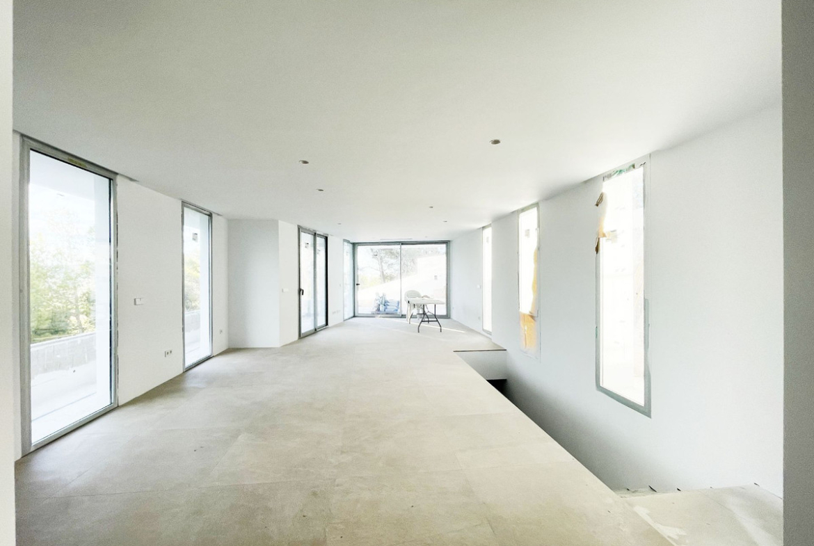 This stunning <strong>modern villa</strong>, currently <strong>80% built</strong>, is located in a quiet area of Moraira, offering a contemporary design with high-quality materials. Situated on an <strong>887 m² plot</strong>, the property has a <strong>built area of 286 m²</strong>, intelligently designed to maximize natural light and unobstructed views of the surroundings.