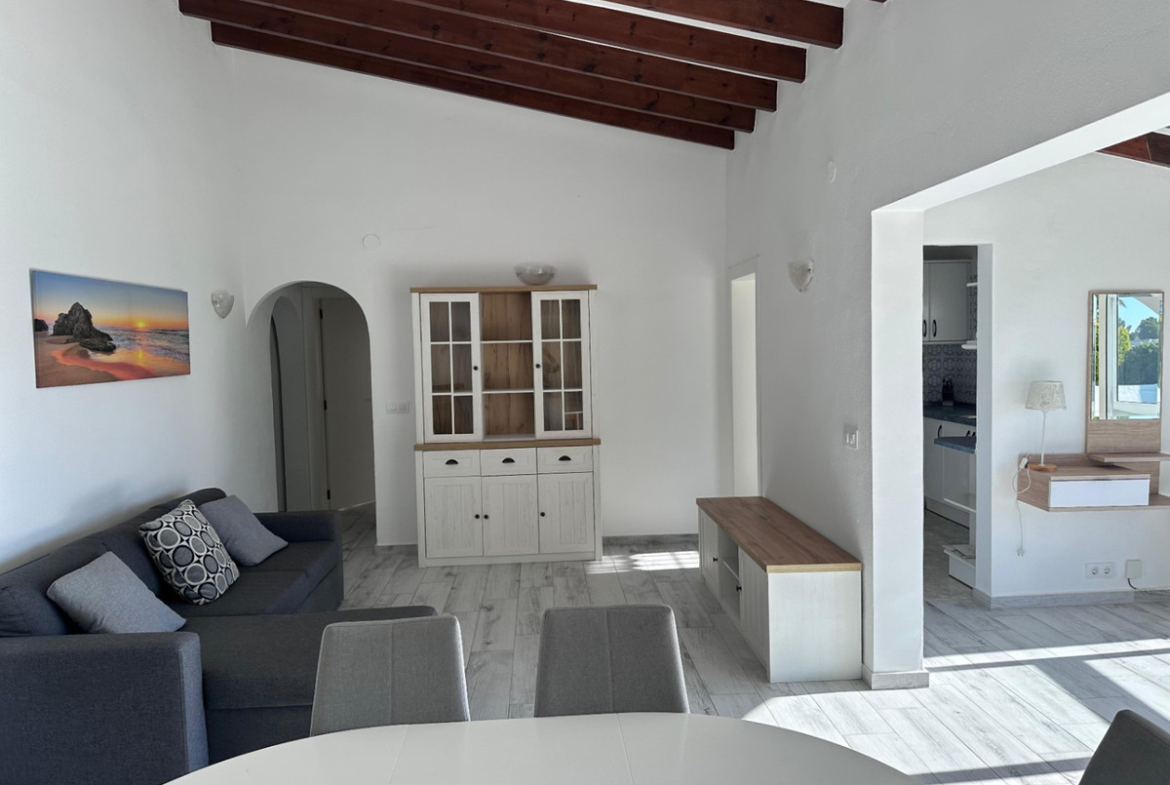 This single-storey villa is located in the quiet neighbourhood of La Sabatera in Moraira on an almost flat plot of 800 m². The property has a south-facing position, offers sea views and is only 3 km from the centre and the coast.