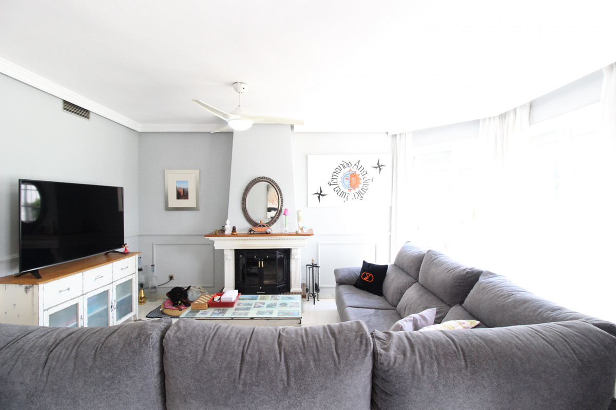 Beautiful townhouse in frontline golf urbanization; it consists of several swimming pools and large landscaped areas. It is a closed and very careful community. Renovated Porches, Solarium , Wardrobes, Bathrooms. The wooden roof is of high quality It has on the ground floor entrance hall, large renovated kitchen and full guest bathroom, living room with fireplace and exit to the terrace with porch and views to the pool of this phase. It also has great porch to the north east at the entrance to the ideal house for sunny days and to be at the frequito. Enjoy the communal garden from the porch of the living room On the first floor the 3 bedrooms and 2 bathrooms, one of them ensuite with shower. New fitted wardrobes in all bedrooms. On the second floor large solarium with new wooden porch. Ideal for chill out area and outdoor dinners with barbecue and closed part as well as laundry room. The fantastic panoramic views to the entire grove area and La Quinta mountains. The urbanization is close to everything: Supermarkets, Colleges, Shops, Restaurants etc.. is ideal for Holidays or for families. And perfect to live all year. It has general air conditioning throughout the house and blinds. San Pedro de Alcantara is a 4-minute drive from Puerto Banus. It is for all an ideal house