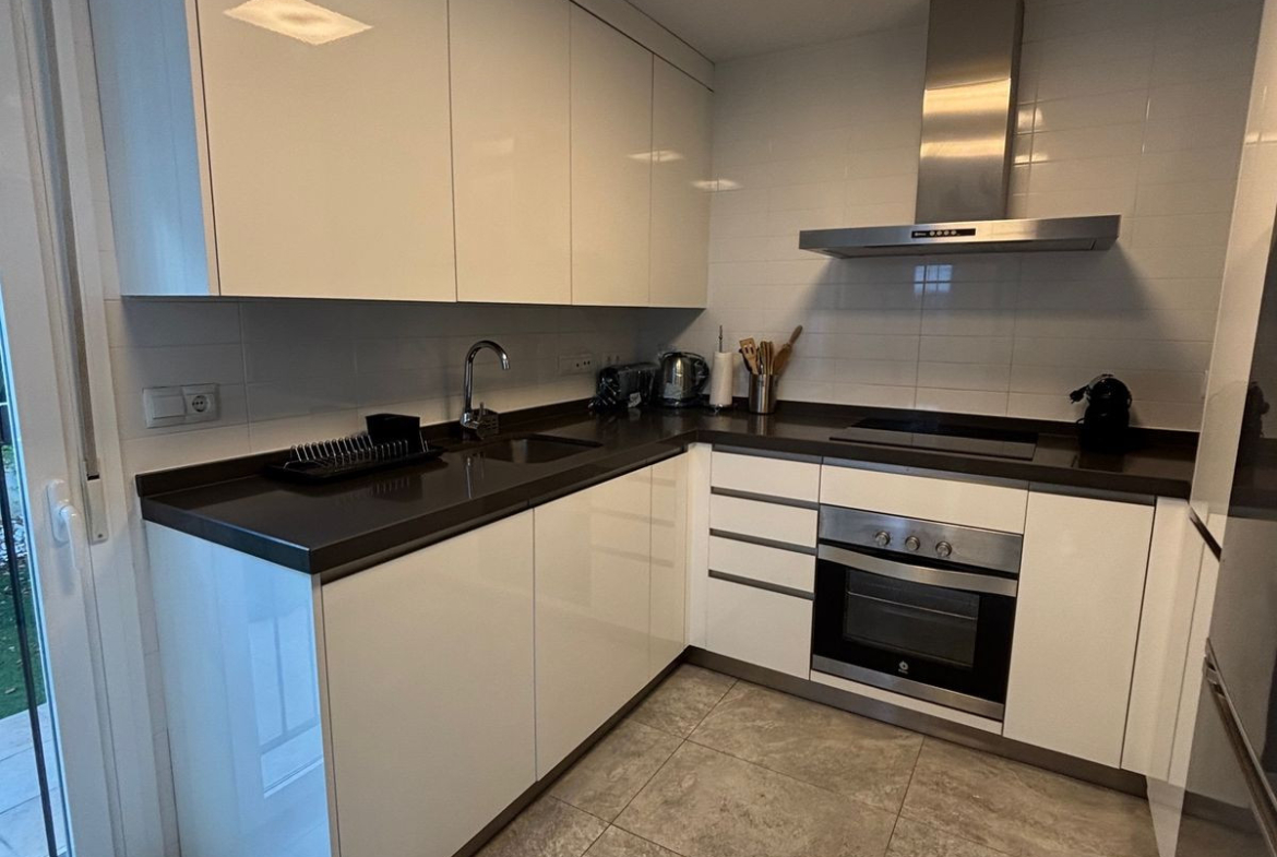 Built in 2015, the property is distributed over two floors and features 3 spacious bedrooms and 3 full bathrooms. The main floor stands out for its open-concept design, with a modern kitchen integrated into the living-dining area, creating a spacious and cozy atmosphere with direct access to the private garden—ideal for enjoying Marbella’s climate all year round. This floor also includes a full bathroom.