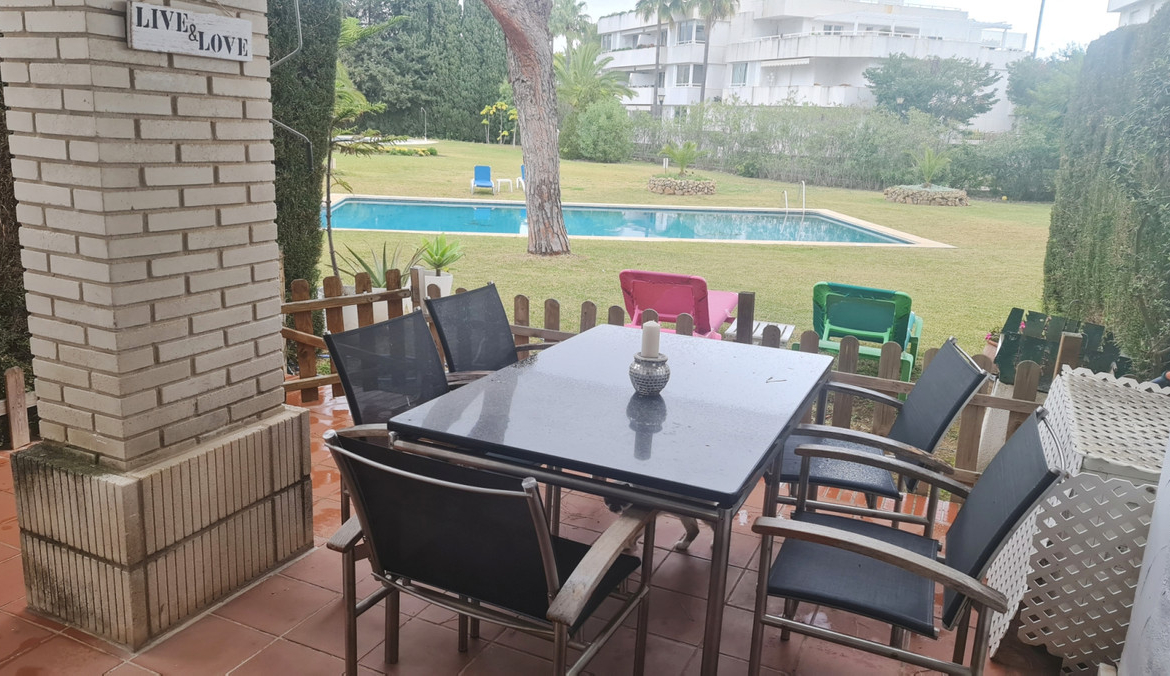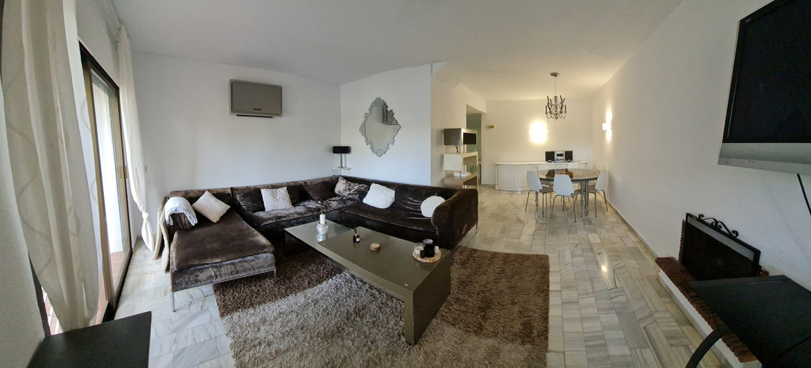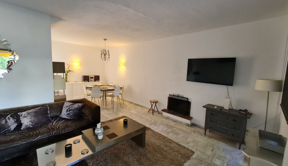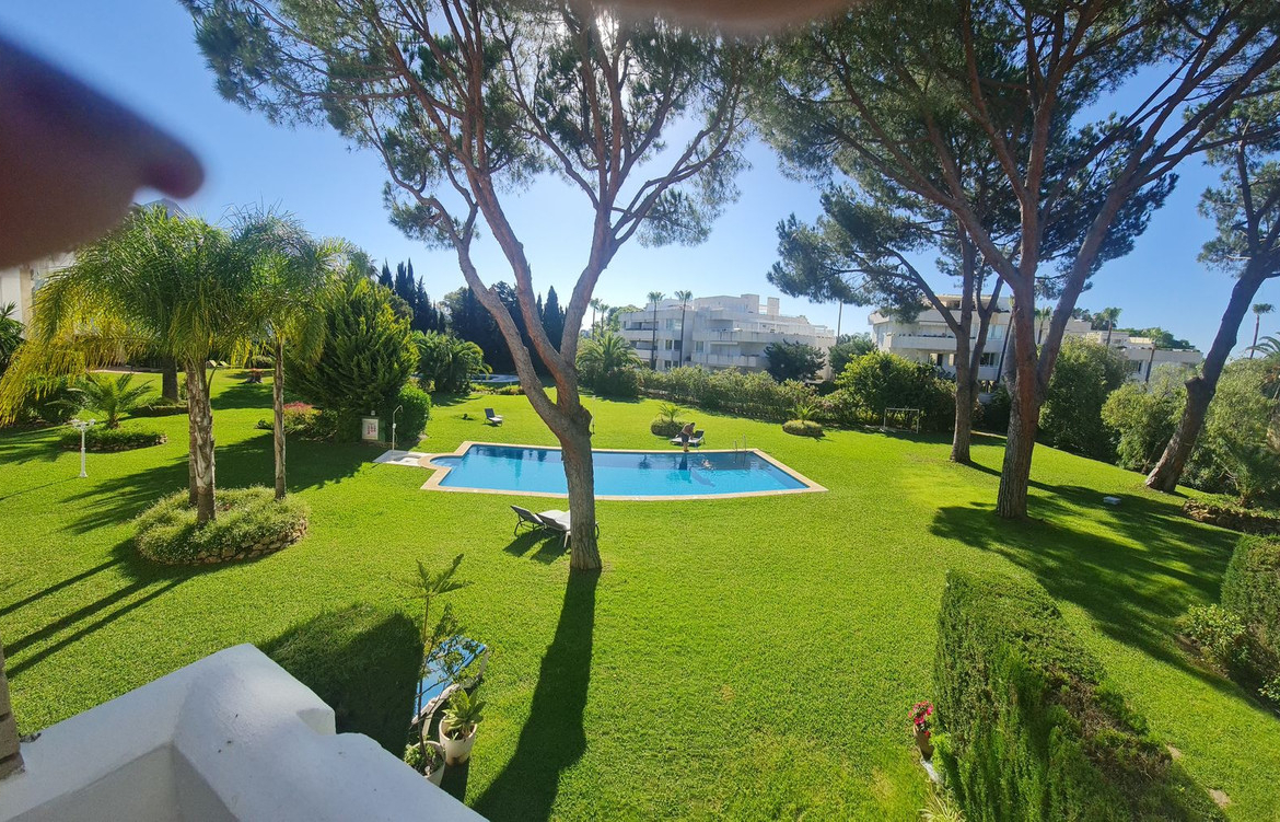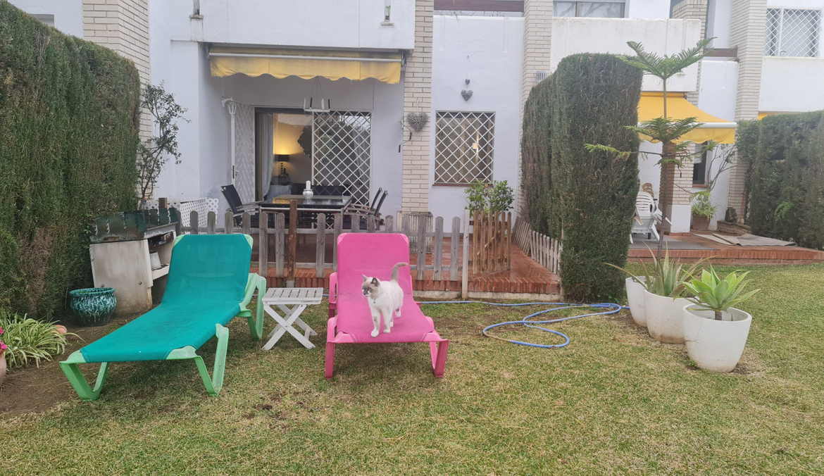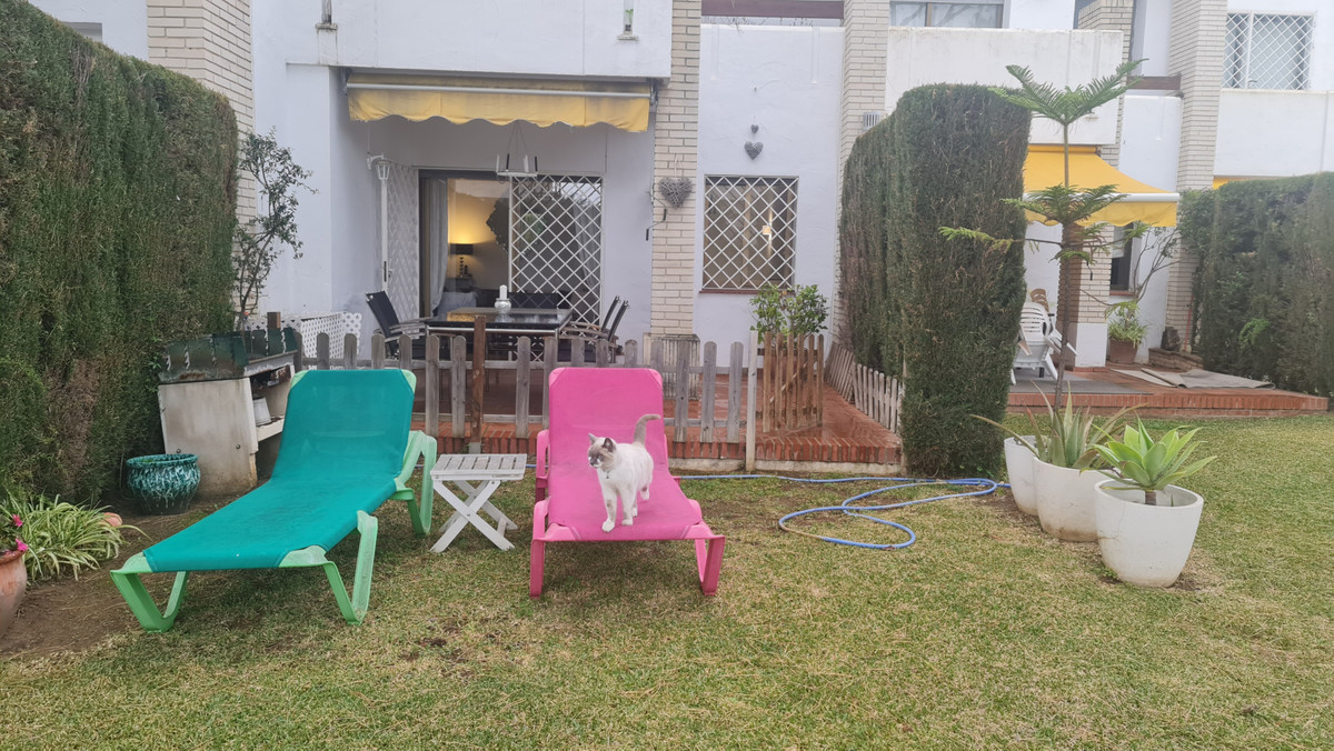 Surrounded by 12.000 m2 of gardens for only 12 properties and in front of las Brisas Golf. This lovely , 3 bedrooms duplex with 2 bahrooms and guess toilet .Offers you communal pool and gardens, to enjoy “the golf-valley way of life”. Air cond all the rooms South and west orientated.Electric Windows Fireplace . .Parking inside of the gated complex. Cousy place to live very ,quiet and walking distance to las Brisas golf corse and los Naranjos Golf corse, close to Puerto Banus.