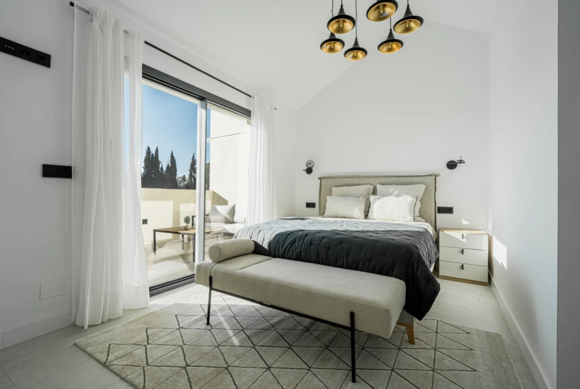 Located in the highly sought-after Los Pinos de Aloha enclave, this stylish townhouse offers three bedrooms, four bathrooms, and a bright south-facing orientation with direct access to the communal pool. The renovated style is sleek, minimalistic, clean, and modern.