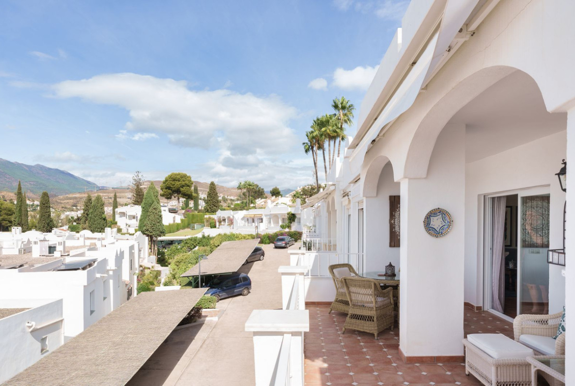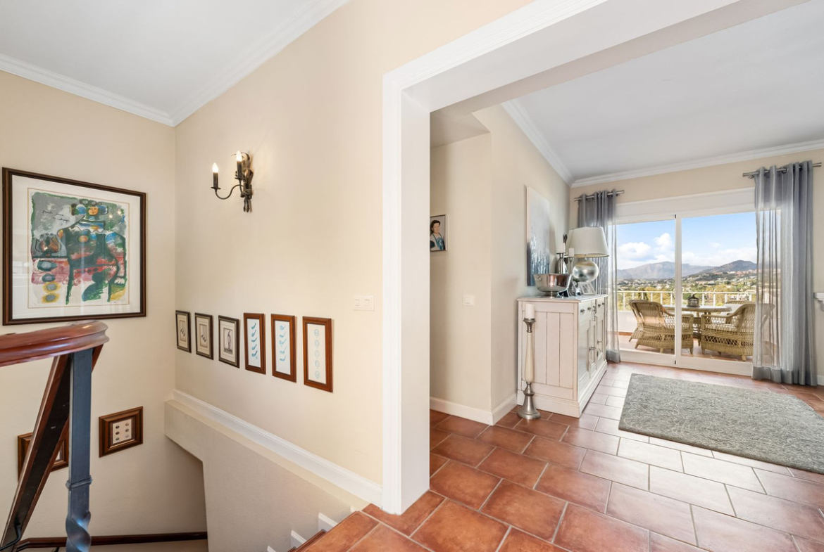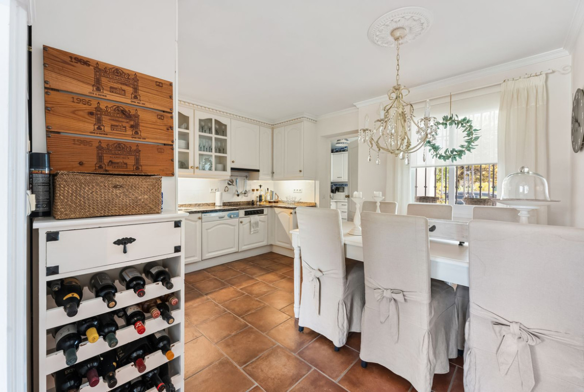 We present this special & classic property in the well known development of Los Jarales. Nestled in the heart of Aloha with views towards the Aloha golf course and across the valley. The spacious entrance takes you to the property through the large patio where you can enjoy the morning sun and its a perfect place for the warm summer evenings. The spacious living room has direct access to the west facing terrace with beautiful open views, here there is also the large kitchen and laundry area , the spacious master suite and a guest toilet. On the lower floor you have 2 large ensuite bedrooms. The property comes with a private look up garage which is easy accesable from the house. The property has been well maintained by the current owners and is ready to move into. Please note that the m2 built are bigger than advertised. A true gem in a popular urbanisation.