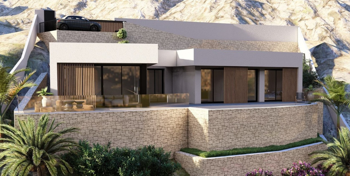 This fantastic project has been designed to sit on a large plot of 1000m2 with stunning mountain views in the Monte Solana area of Pedreguer. Just 3 minutes drive from the village and less than 15 minutes from the coast of Denia. This plot is SOUTH facing with spectacular views to natural park and mountains.