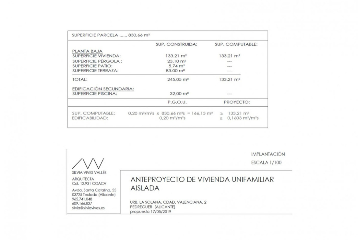 For sale вилла. Location Pedreguer (ALICANTE). Total area 133.00 m2. Number of rooms – 4. Number of bedrooms 3. Number of bathrooms 2. Distance to the sea 15.00 km. Plot area 830 m2. Orientation East.
