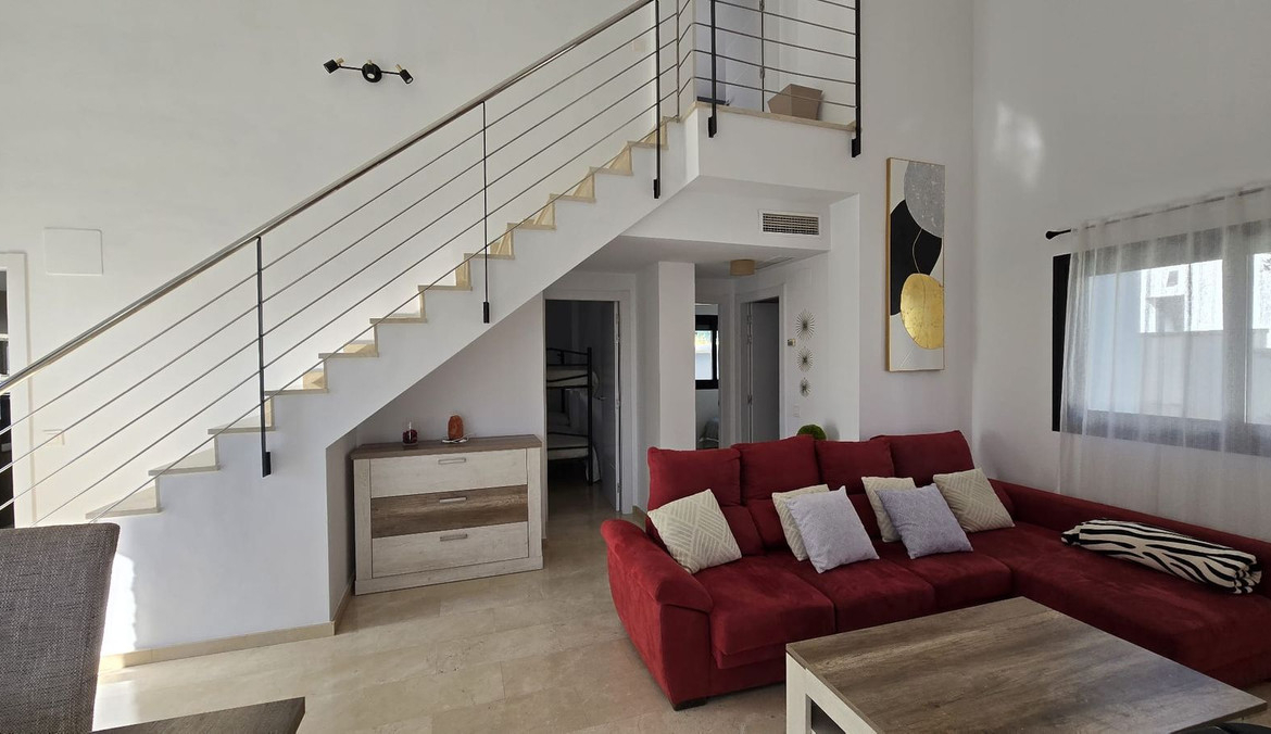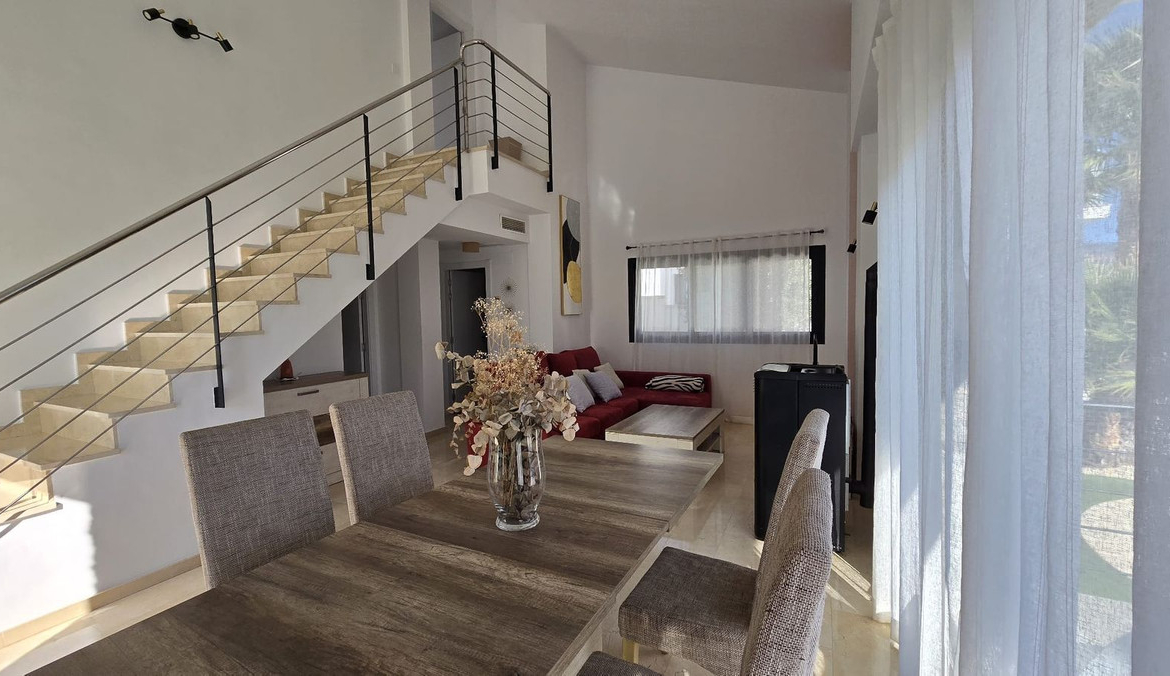 Upon entering, you are welcomed into a bright and open living area that flows effortlessly into a fully equipped kitchen. The ground floor also features a spacious bedroom and a beautifully designed bathroom, making single-level living a convenient option. On the first floor, you will find two generous bedrooms, a modern bathroom, and access to a large terrace with breathtaking views—perfect for enjoying the Mediterranean climate.