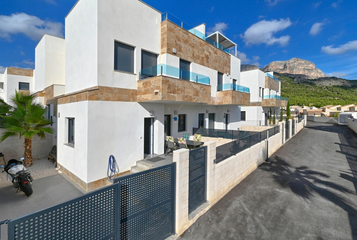 A modern home in an exceptional natural settingDiscover this exclusive semi-detached chalet in Polop, a true architectural gem surrounded by nature—perfect for those seeking peace without giving up comfort. With 113 m² spread over two floors, this contemporary-designed home offers 3 spacious bedrooms and 3 bathrooms, ensuring ample space and privacy for the whole family.Its south-facing orientation guarantees natural light throughout the day, while its well-thought-out layout and quality finishes create a warm and functional atmosphere. Built in 2022, the house is in excellent condition, featuring built-in wardrobes, air conditioning with hot/cold pump, and easy-to-maintain ceramic floors.The outdoor area is a true oasis of relaxation, with a private terrace, garden, and solarium, where you can enjoy the Mediterranean climate and stunning views. Additionally, it includes a community pool and a parking space in the price.Located in a growing area, this chalet is just 15 minutes from the beaches of Albir and Benidorm, close to supermarkets, schools, and the renowned La Nucía sports complex, making daily life more convenient.If you're looking for the perfect blend of modernity, comfort, and nature, this chalet is for you. Don’t miss this opportunity—schedule a visit today!