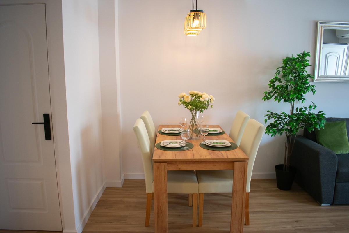 With three bedrooms (two upstairs and one downstairs) and two bathrooms, this townhouse offers functional and well-organized spaces. Downstairs, there is a spacious and comfortable living room with a sofa bed, air conditioning, and a large dining table . The modern kitchen is fully equipped with new appliances and ample cupboards . There is also a double bedroom , a bathroom with a modern shower , a utility room , and a storage room .