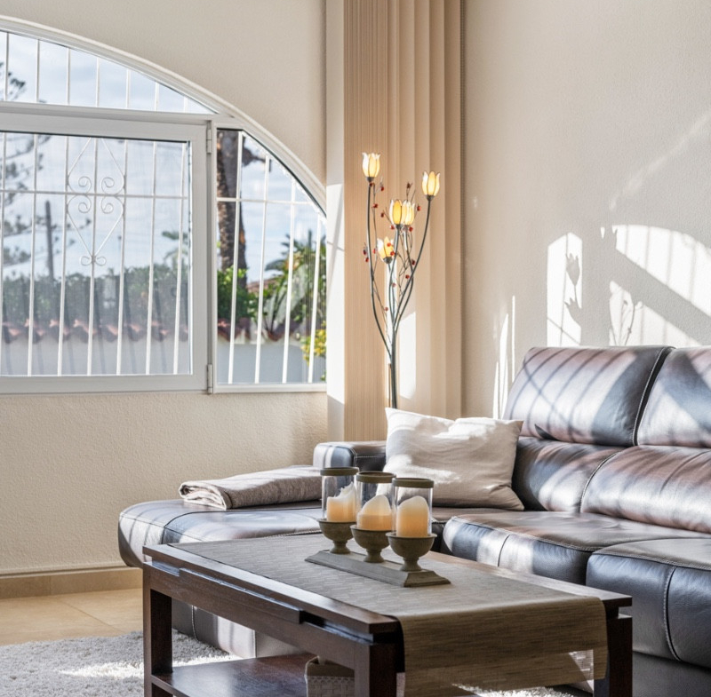 The house is distributed into three spacious bedrooms and two bathrooms, with the master bedroom benefiting from an en-suite bathroom. The villa boasts a bright and spacious living/dining area filled with natural light, creating a warm and welcoming atmosphere.