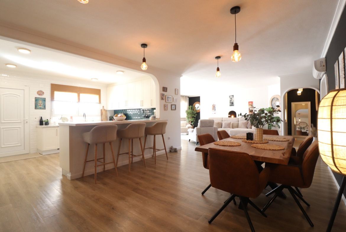 This Immaculate, Fully Reformed, South Facing Country Property is located in Rojales, situated on a sprawling 10,300m² plot with breathtaking open views of the mountains, countryside, and citrus groves. The main villa boasts a generous 240m² build size and has been beautifully modernized to the highest standards. Featuring a stylish open-plan kitchen, a sleek and contemporary living space, and three vast bedrooms with fitted wardrobes, this home offers both comfort and elegance. The upmarket 3 bathrooms provide a spa-like retreat, two of which are en suite, while the separate utility room adds practicality. A self-contained annex offers additional accommodation with three bedrooms and a bathroom, making it perfect for guests or extended family. The entire property is equipped with air conditioning throughout, a high-tech alarm system, and all-new plumbing for complete peace of mind. The outdoor space is just as impressive, with a stunning 14 x 7m private pool featuring built-in sunbeds and a relaxing jacuzzi. The beautifully landscaped garden also includes a BBQ area, an outdoor kitchen, and a bar and entertainment space—ideal for hosting gatherings. A firepit adds to the ambiance for cooler evenings, while a chicken coop provides a charming countryside touch. Sports enthusiasts will love the remarkable private football and basketball artificial grass pitches, and practical features such as off-road parking and a garage ensure convenience. Located just a 5-minute drive from shops, bars, and restaurants and only 12 minutes from the award-winning blue flag beaches of Guardamar del Segura, this exceptional property offers a luxurious yet peaceful lifestyle in Costa Blanca South.