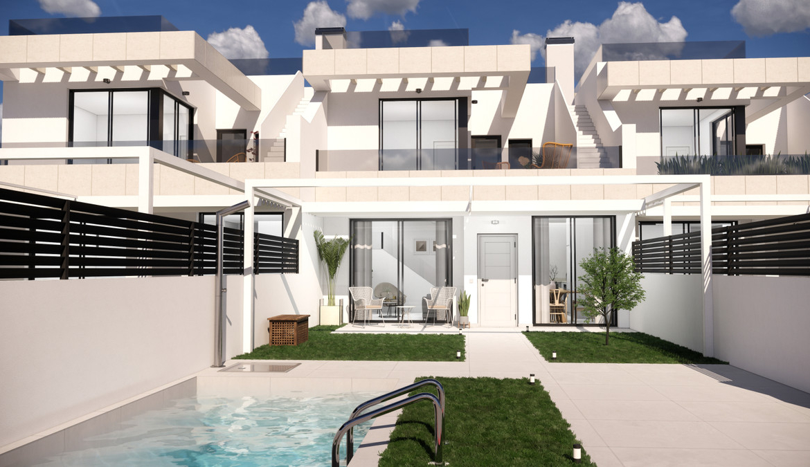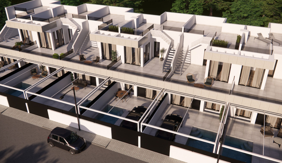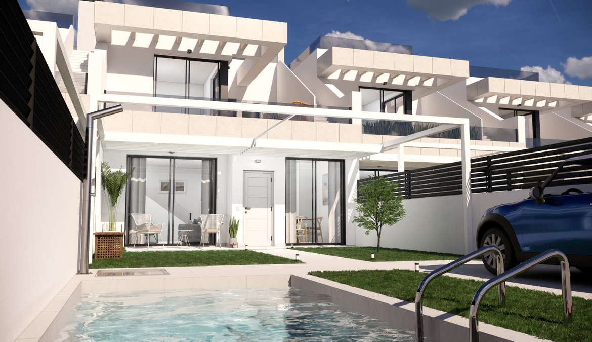 Large windows with high-performance “Guardian Sun” glass offer both light and insulation. Each home comes with a private 5×3 metre swimming pool, included in the price, providing the perfect space to relax and enjoy the Mediterranean climate.