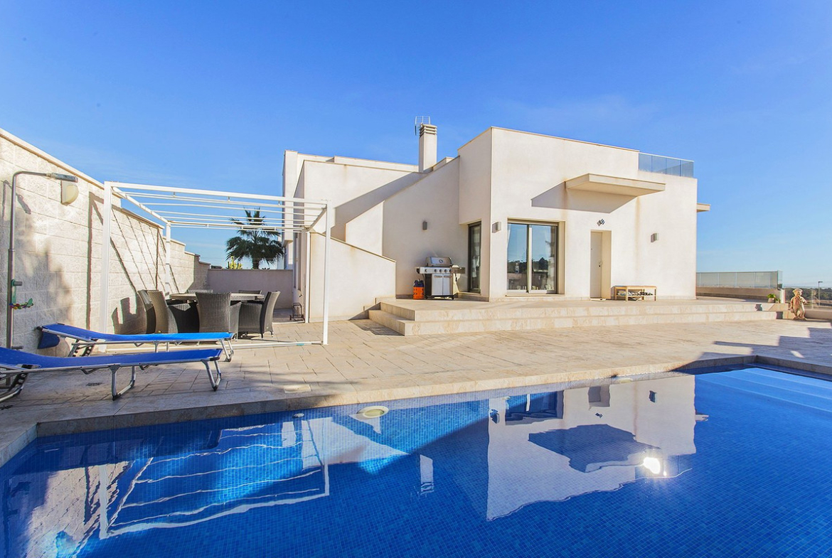 Detached modern style 3 bedroom villa with large basement, pool and plot in San Miguel de Salinas