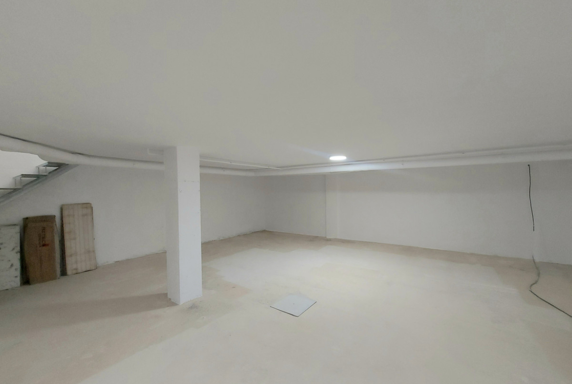 Semi-detached villa of 153 m², featuring three bedrooms and three bathrooms, a living-dining room, fully equipped kitchen with all appliances, 60 m² basement, private parking, private swimming pool with shower, and a solarium with summer kitchen and shower.
