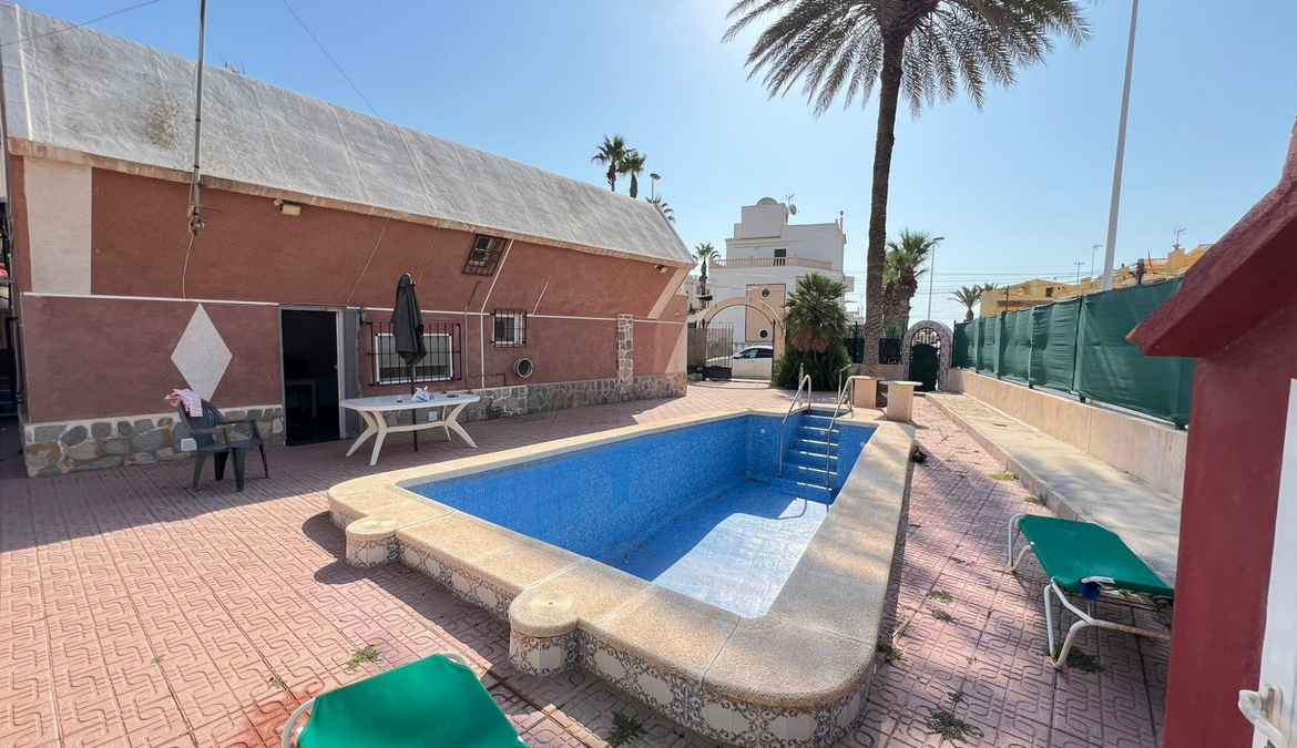 In a prime location, just steps from the beach, you'll find this plot with a pool and several buildings, ideal for transforming into your dream home.