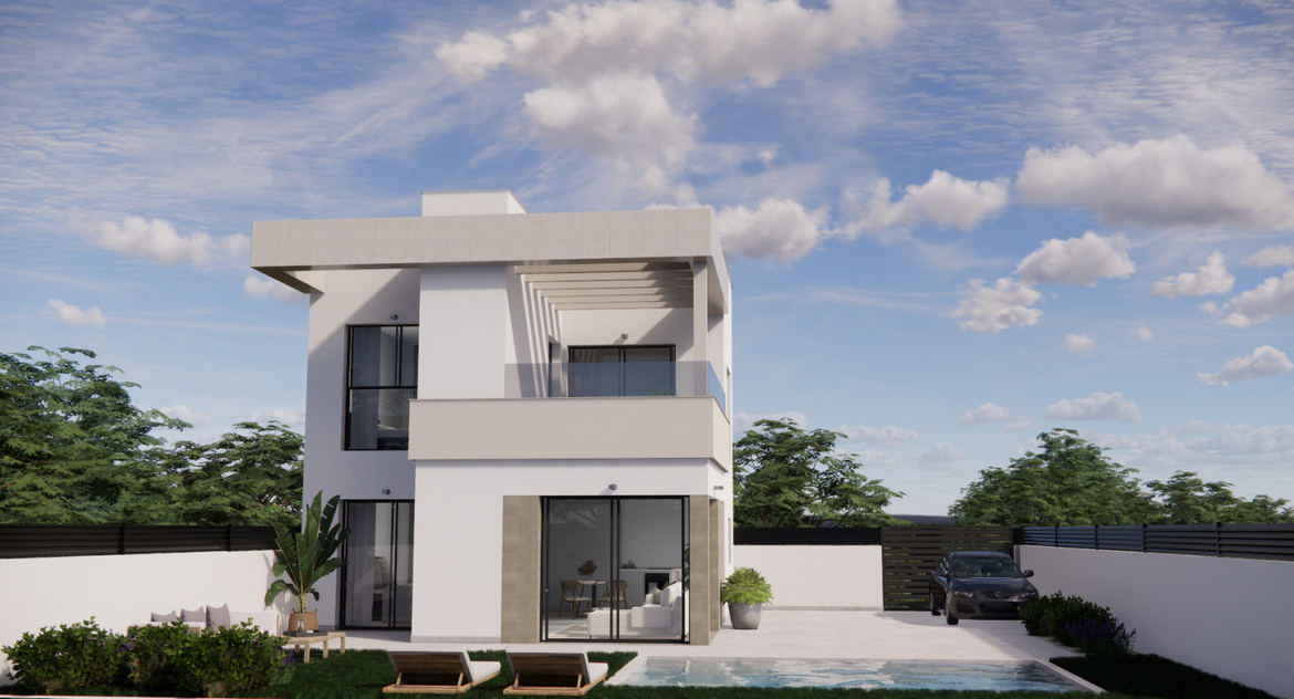 Large windows with high-performance “Guardian Sun” glass offer both light and insulation. Each home comes with a private 5×3 metre swimming pool, included in the price, providing the perfect space to relax and enjoy the Mediterranean climate.