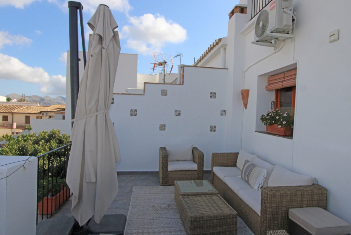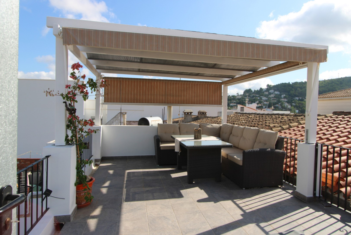Immaculate townhouse near the centre of Orba recently refurbished to a very high standard. The property is entered through 2 large wooden doors which lead into a large, bright open living area from which the internal walls have been removed. The high ceilings give a feeling of space and openness. This area is divided into a dining area and separate living room. There is an A/C unit for both hot and cold air and a pellet burner in the living room. There is a large separate fully fitted kitchen and also a w.c. on this level. Patio doors lead to a large courtyard which has a functioning well. The courtyard is large enough to fit a pool if required. A beautifully tiled staircase leads to a large open area from which all the other rooms radiate off. This room is presently used as a tv room. There are 3 double bedrooms, one with an ensuite shower room, plus a family bathroom. Patio doors lead onto a large terrace of roughly 18 m2. There is also a large roof terrace with 360 degree panoramic views of the Orba valley on which is a pergola set up as a dining area to enjoy alfresco dining in the warm summer evenings. This property is really finished to a very high standard and has been renovated tastefully to maintain the authentic feel of a Spanish casa de pueblo but with the addition of all modern amenities and is a perfect either as a low maintenance holiday home or as a more permanent family home.