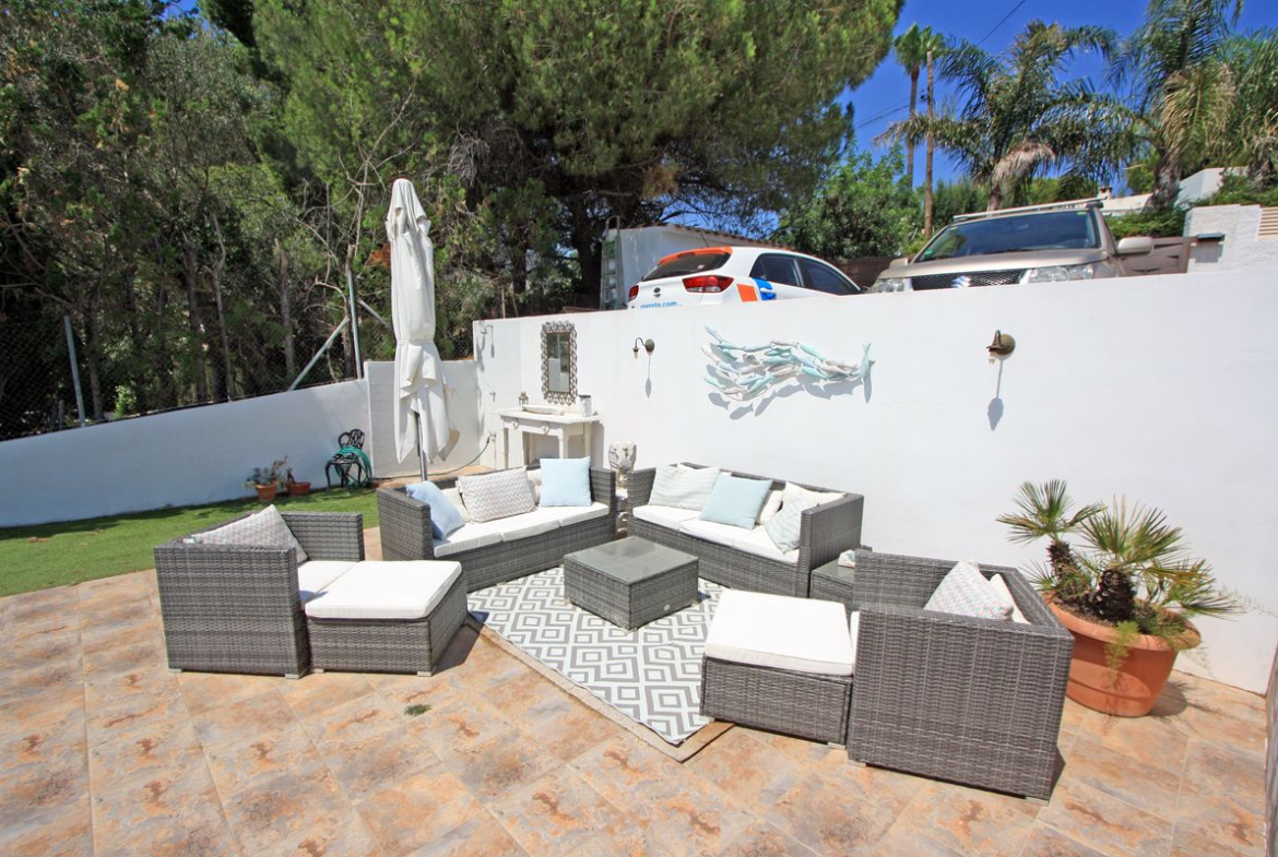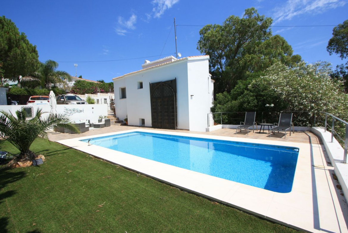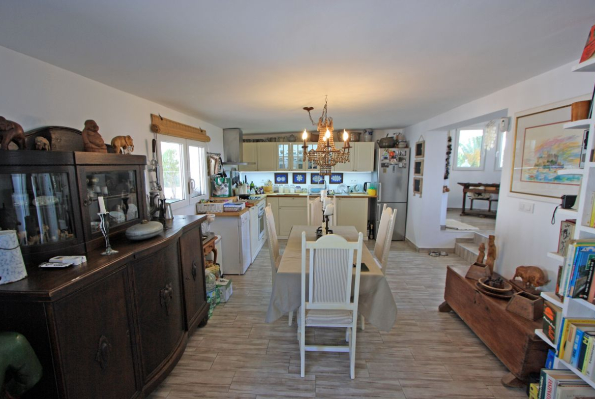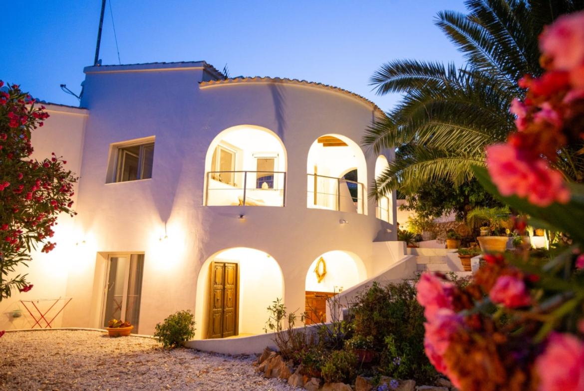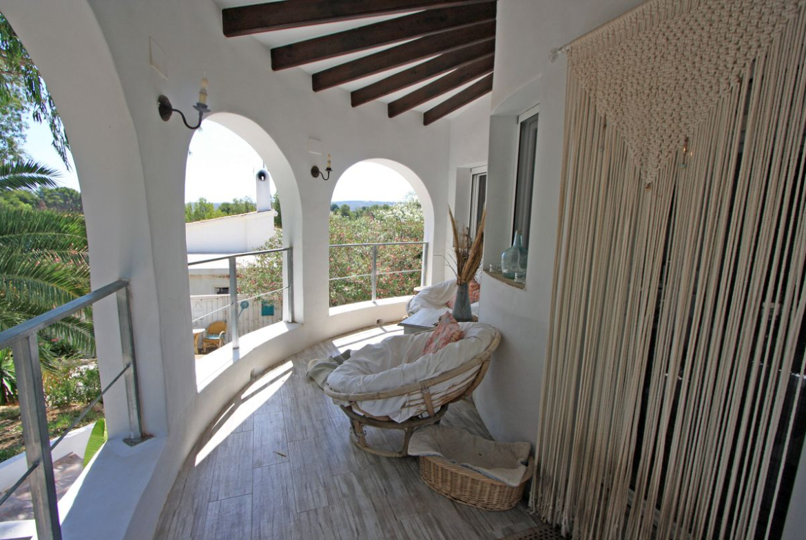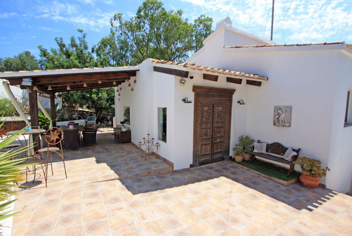 For sale is this cozy villa completely renovated in 2017, located in a quiet residential area with open views of the mountain. Main living area: Living room with a covered terrace that connects to the kitchen-dining room from which there is access to a terrace-naya with BBQ. 2 bedrooms, one of them with a walk-in closet, and 1 bathroom with designer sinks (David Marshall). On the lower floor, with independent access, there is a complete guest studio apartment with its own living-dining room, kitchen, 1 bedroom, and 1 bathroom with a shower. The property features landscaped areas, a Balinese bed, a pool with an outdoor shower, open and covered terraces, as well as 2 storage-laundry rooms, parking for 2 vehicles with an automatic access gate, and a large solarium terrace to enjoy starry nights. Good finishes: PVC windows with armored glass, mosquito nets, individual hot-cold air conditioning, centuries-old doors made of tropical woods from India, ceramic floors, etc. It is sold partially furnished. Located at the top of a hill in a low-traffic street and just 2 km from the coves of Las Rotas or 3 km from the city of Dénia.