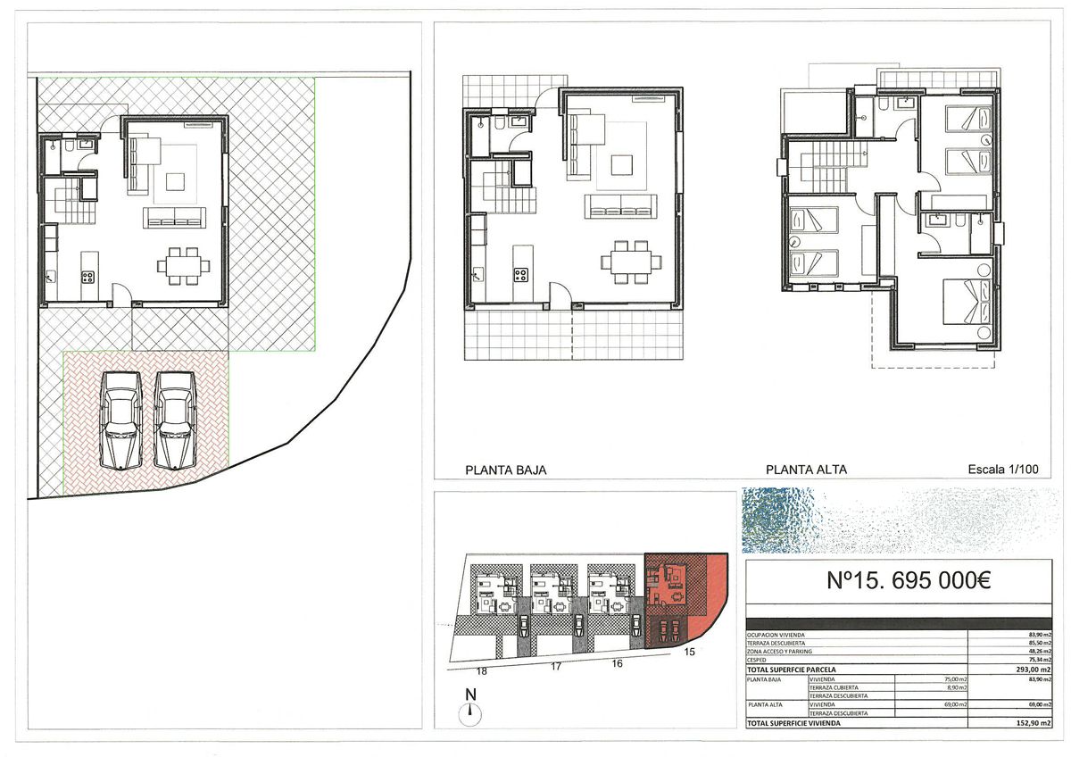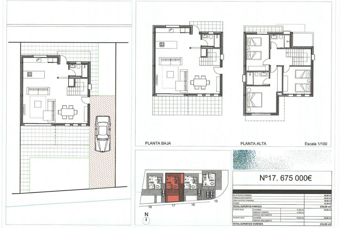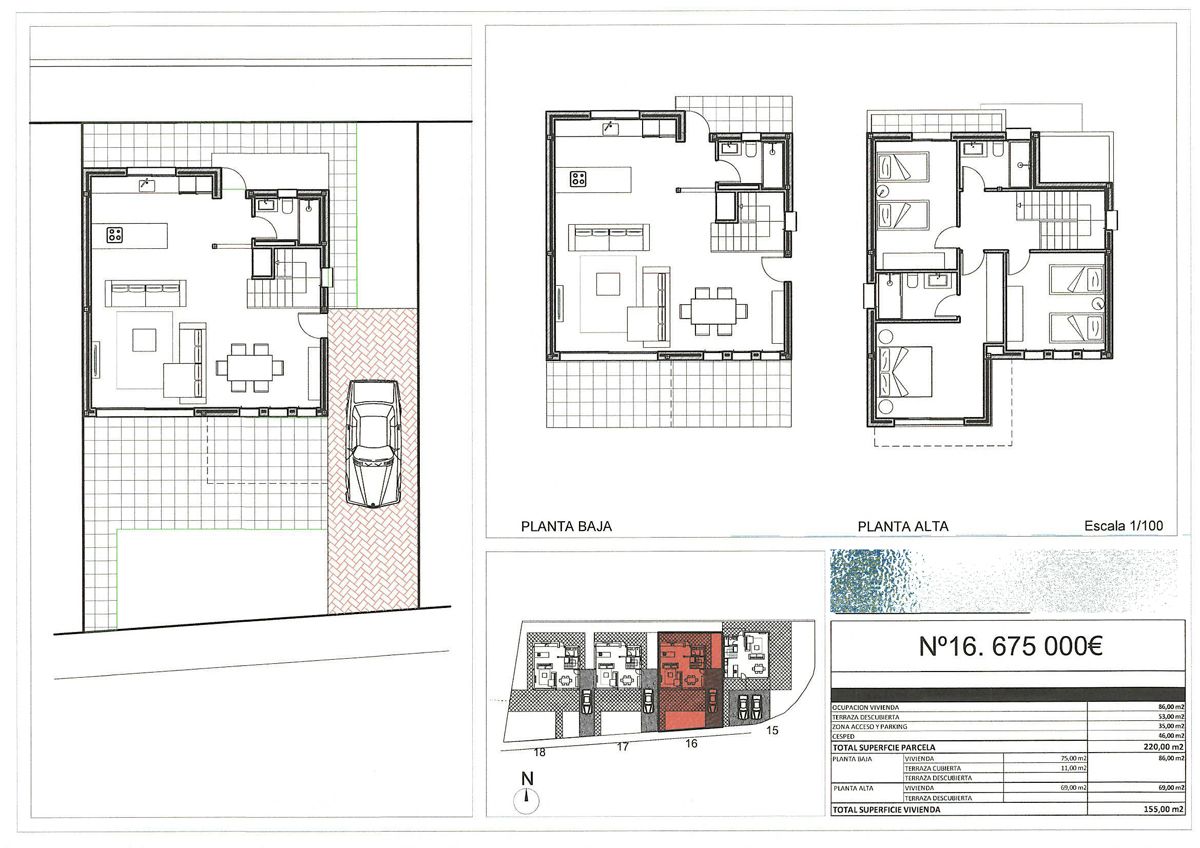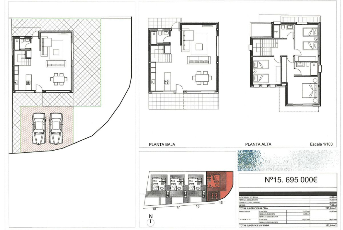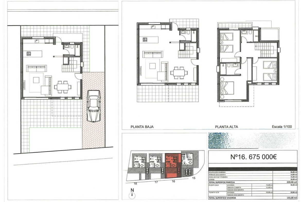For sale and completed construction of four exclusive single-family homes that stand out for their modern and functional design. Each home will have access to the spacious communal swimming pool, ideal for relaxing and enjoying the Mediterranean climate, but will also feature its own south-facing private garden, ensuring privacy and natural light throughout the day. Details that make a difference: These homes are designed to offer maximum comfort: 3 bedrooms and 3 bathrooms, perfect for families or those looking for spacious and versatile living areas. Plots ranging from 220 m² to 320 m², offering ample space and possibilities to customize your outdoor area. Built with top-quality materials, carefully selected to ensure durability, style, and sustainability. Each home includes its own private garden and independent parking, ensuring comfort and security. A home with everything you need just a step away from the center of Denia, you will be close to restaurants, shops, beaches, and all the services that make this city such a special place. At the same time, you will enjoy the tranquility of a residential neighborhood designed for your rest and well-being. PRICES: PLOT 15: €695,000 PLOT 16: €675,000 PLOT 17: €675,000 PLOT 18: €710,000