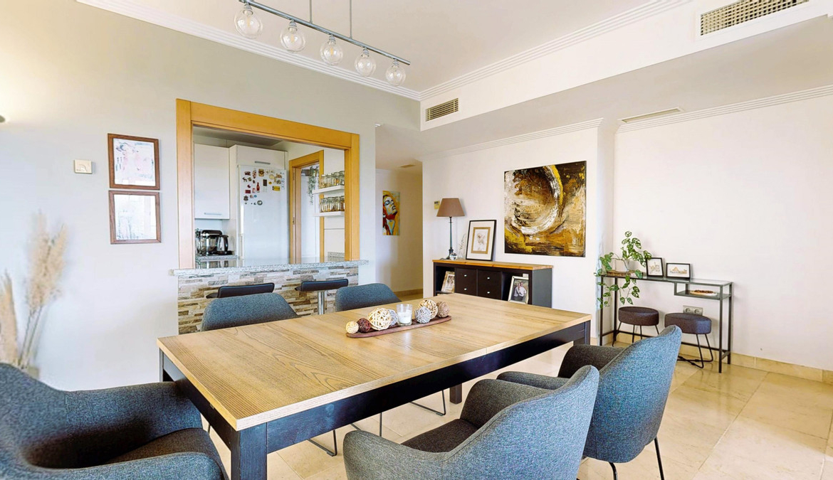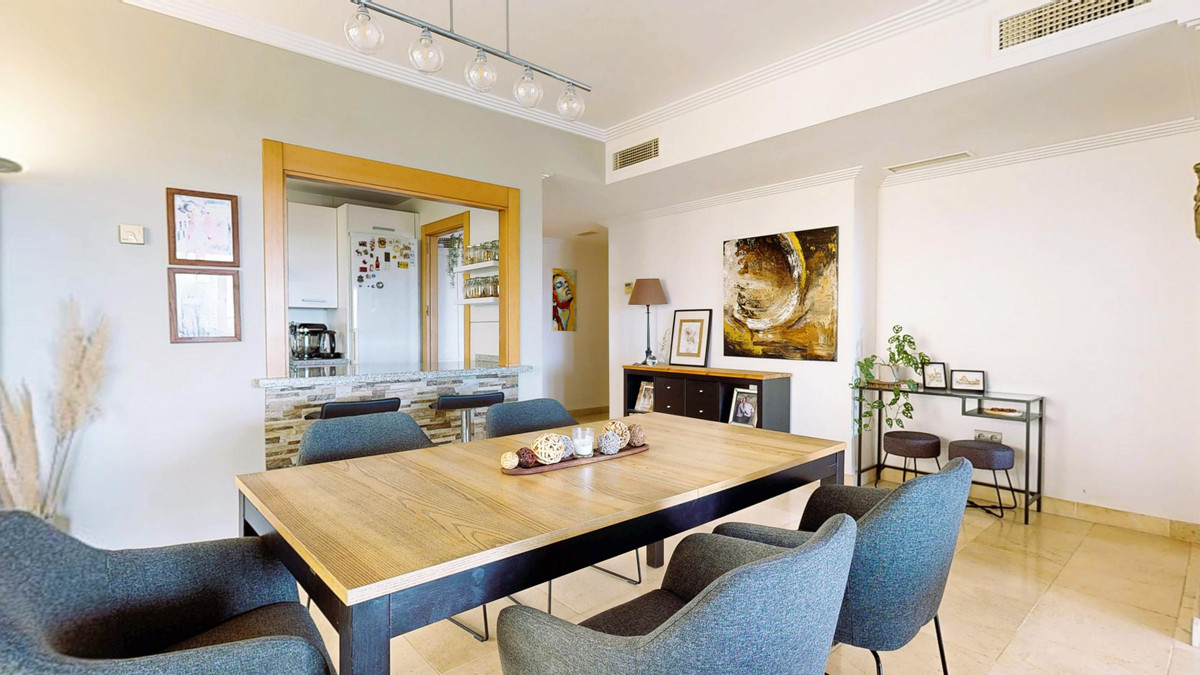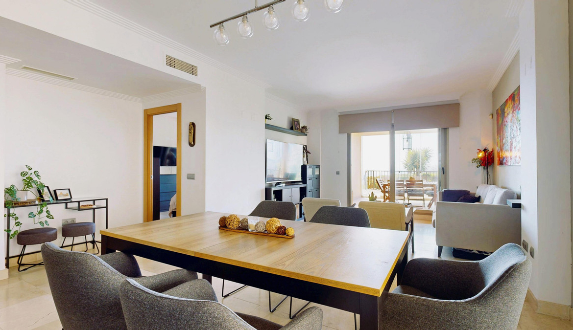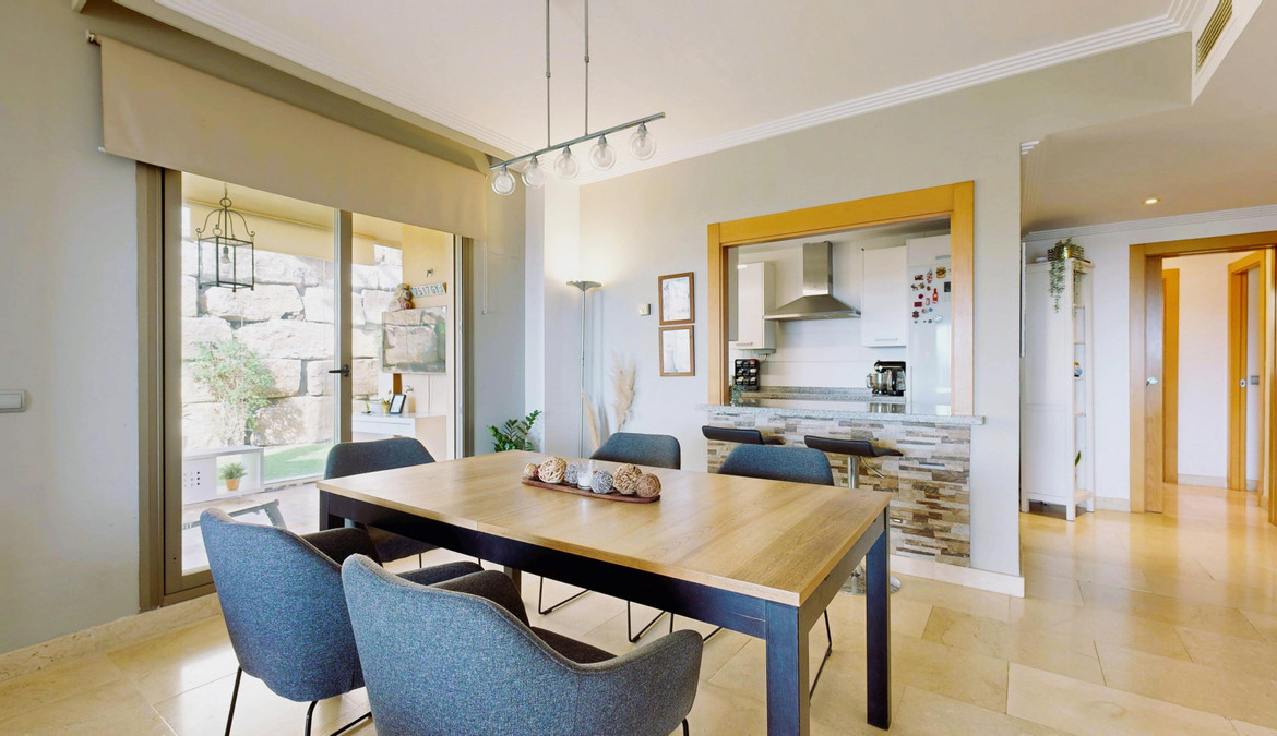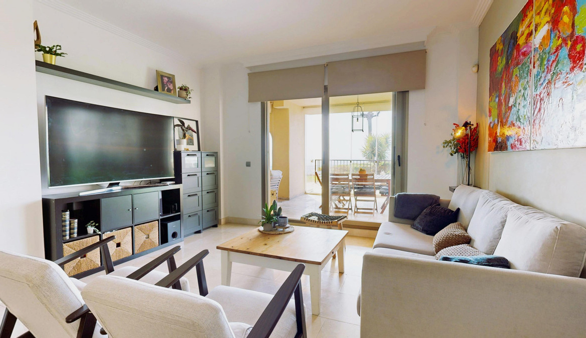 If you are looking for a private retreat where privacy and views take center stage, this corner ground-floor apartment is your property. Positioned in a prime spot within the complex, it stands out for its private garden and a glass-enclosed terrace that functions as a second living room overlooking the sea—guaranteeing spectacular sunsets.