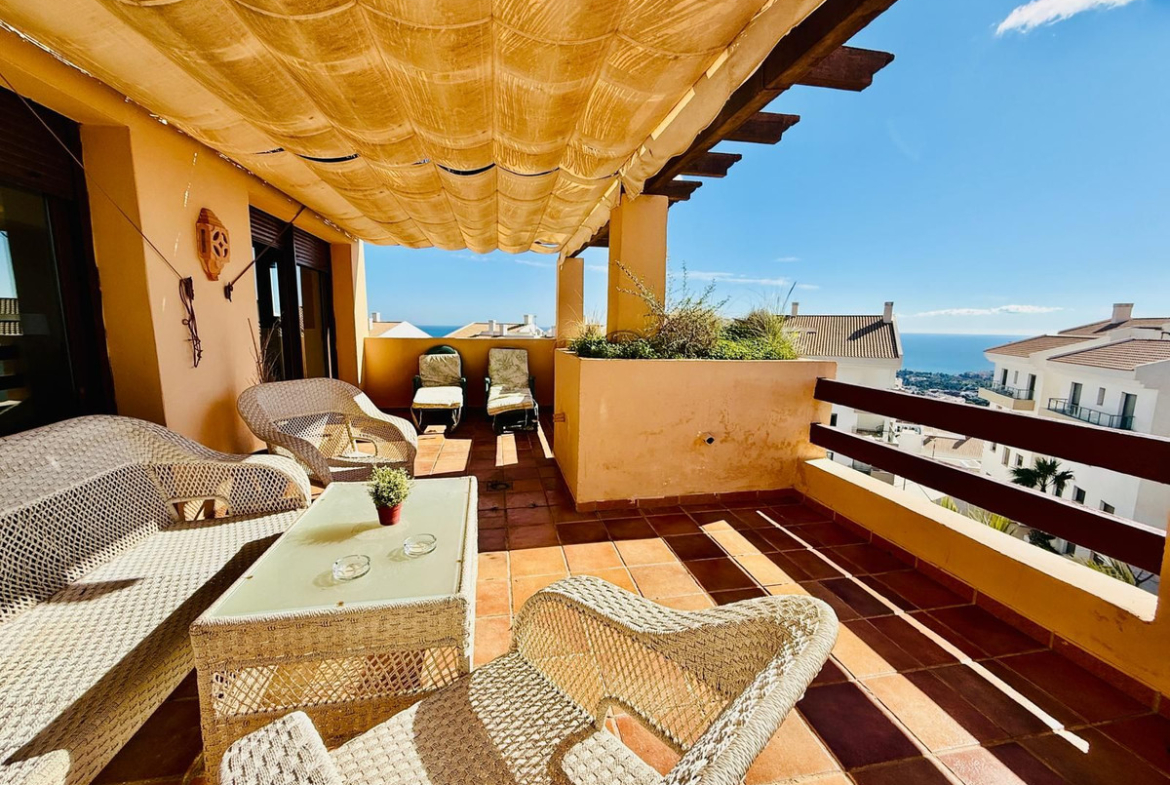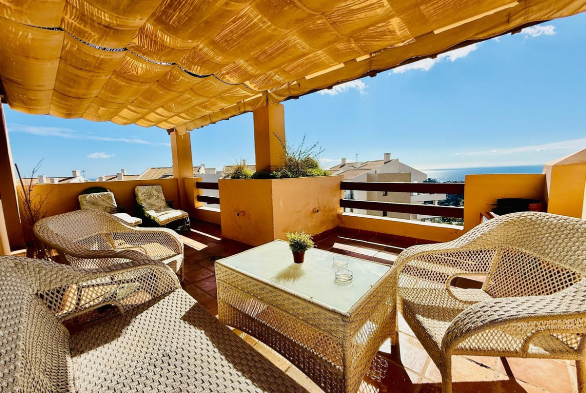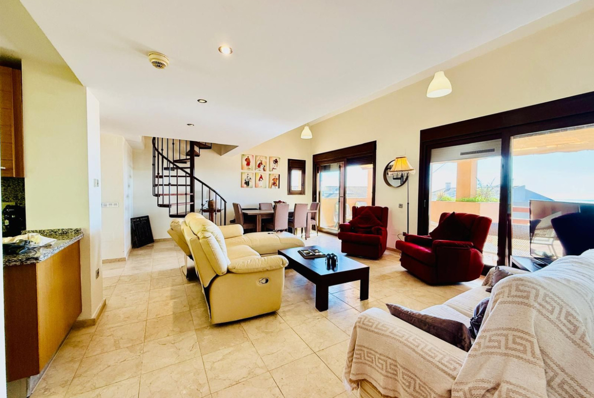 Magnificent duplex penthouse in Benalmádena, located in a quiet, gated community with easy access to the motorway, close to golf, sea views and 4 km from the beach. Property with tourist licence, ideal for residential use or holiday rental.
