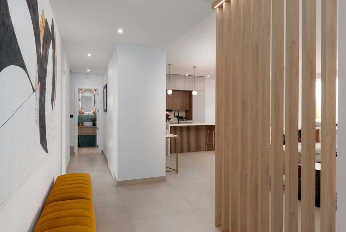 Kitchen: Bespoke open-plan kitchen of superior quality, fully equipped with premium appliances including fridge/freezer, oven, microwave, dishwasher and wine cooler. Bedroom 1: Spacious double bedroom with fitted wardrobes, 2 working spaces and and natural light. Opening up to a large terrace with mountain and pool view. Bathroom: Stylish bathroom with walk-in shower, vanity, wc and storage. Second floor: Bedroom 2 & 3: Spacious bedrooms with fitted wardrobes and natural light. Direct access to a large terrace with sea views.