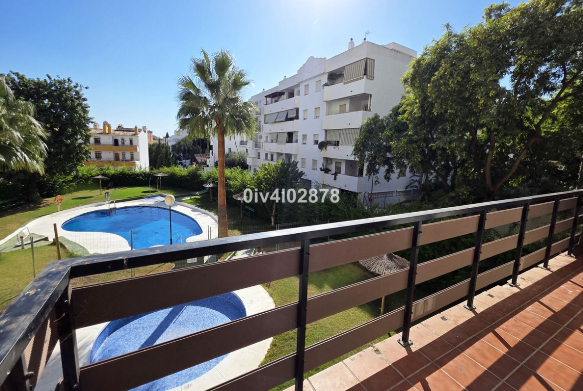 One of the property's most appealing features is the expansive, wrap-around communal terrace. Its exclusive location at the end of the building means it is used solely by these two apartments, ensuring privacy and tranquility. The terrace provides some sea views and overlooks the community pool and gardens.