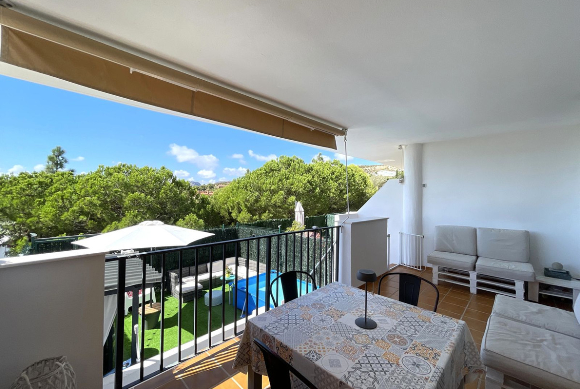 A spacious, sunlit front terrace equipped with perimeter awnings, ensuring comfort in both summer and winter. From here, you can enjoy open views and the sea on the horizon, bathing the home in natural light.