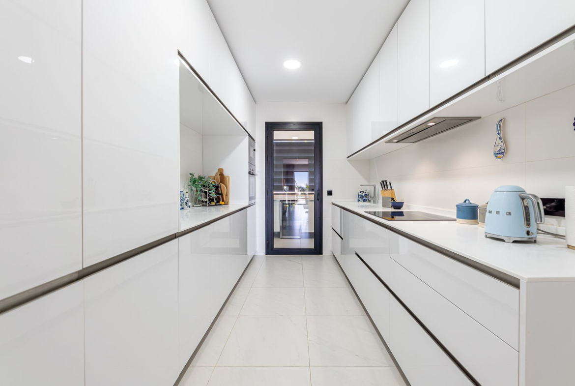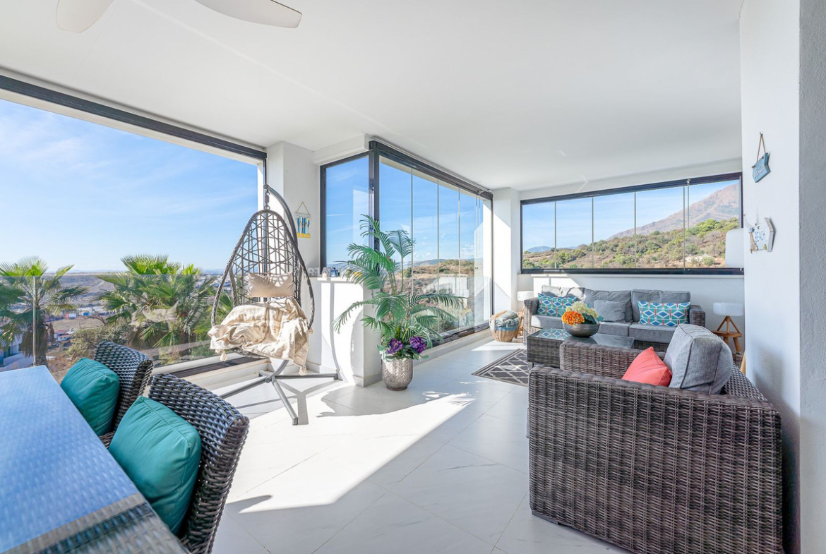 An immaculate and rarely available 4-bedroom apartment located in the prestigious Mirador de Estepona Hills. This spacious home offers four generous bedrooms with fitted wardrobes and three modern bathrooms (one en suite). The state-of-the-art fully fitted kitchen includes a separate utility room.
